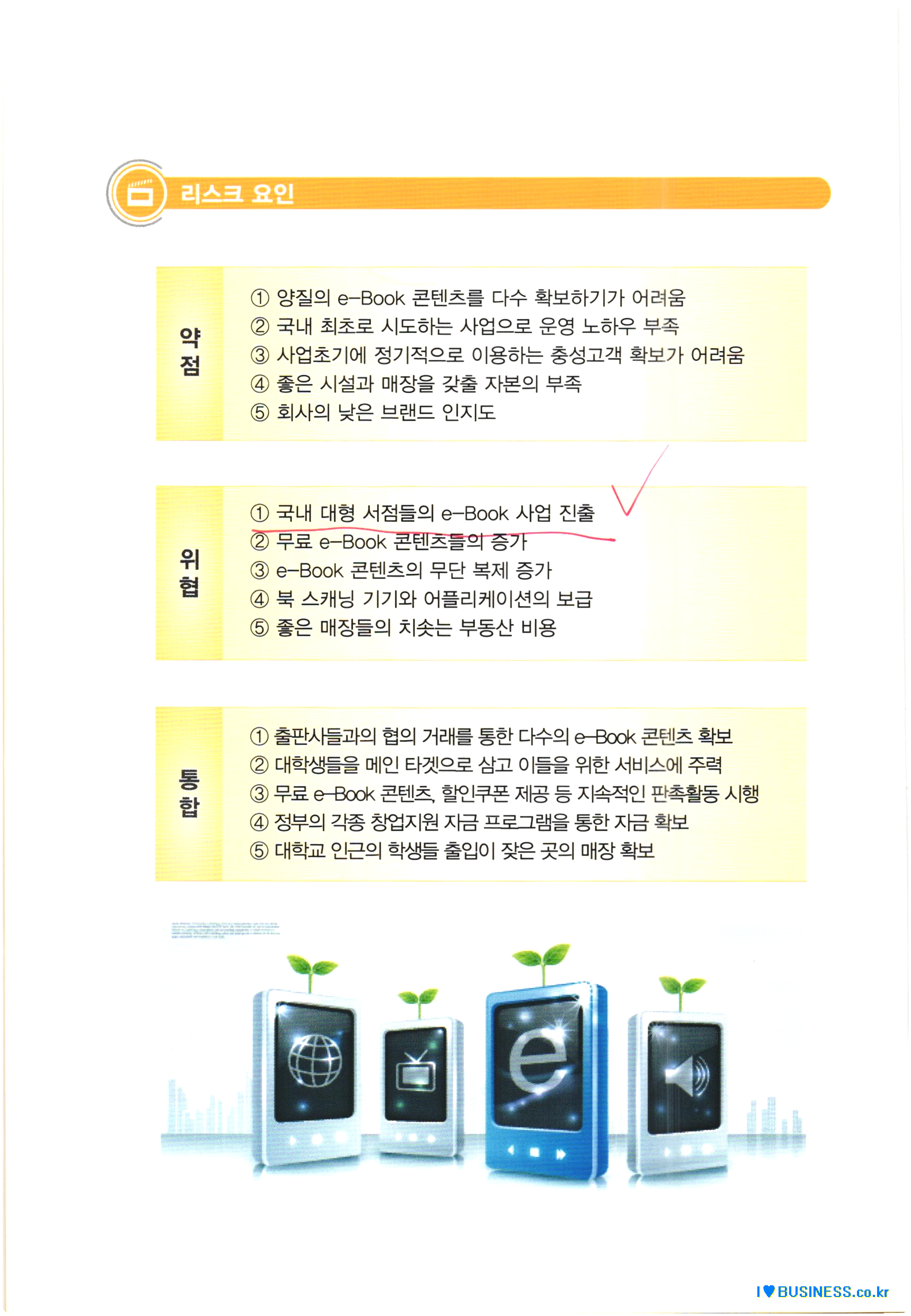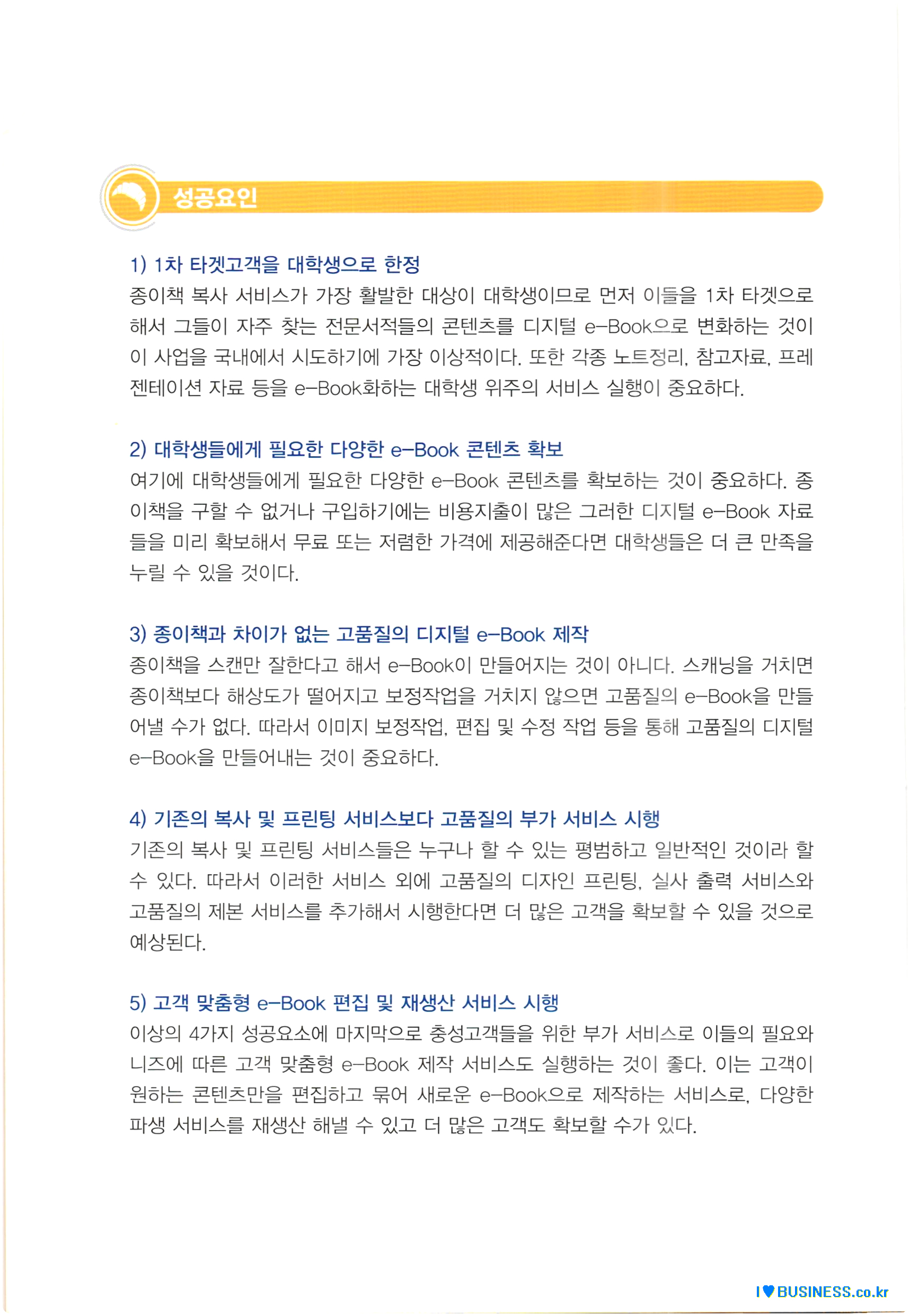 In order to compete with these services, an optimized e-book service and marketing strategy tailored to the needs of customers are required. Therefore, a company that provides a service that converts paper books into e-books that comprehensively provides the content, design, layout, and promotion of the book has great potential for growth.
