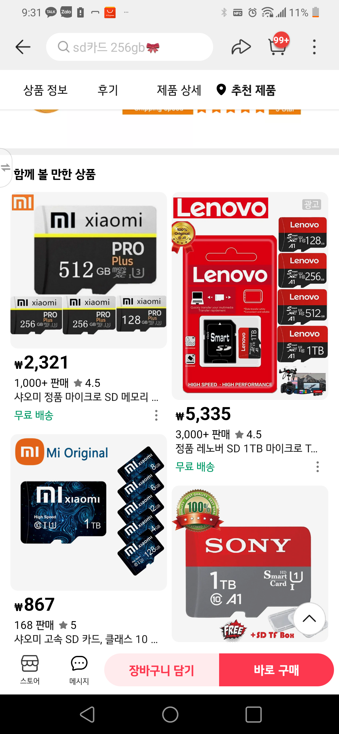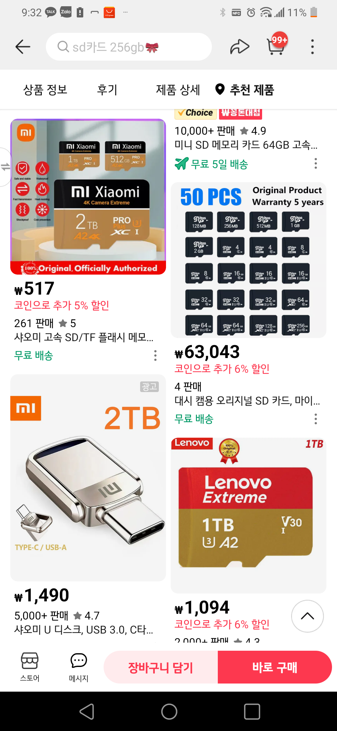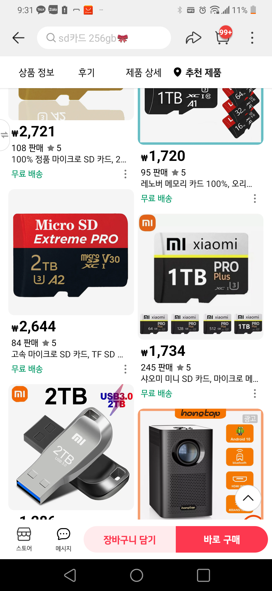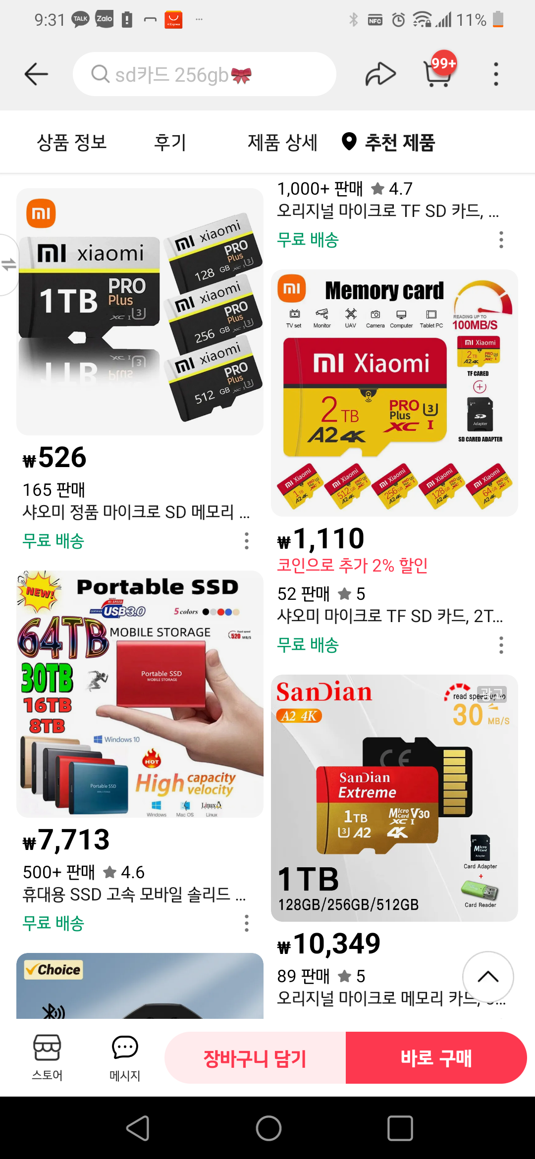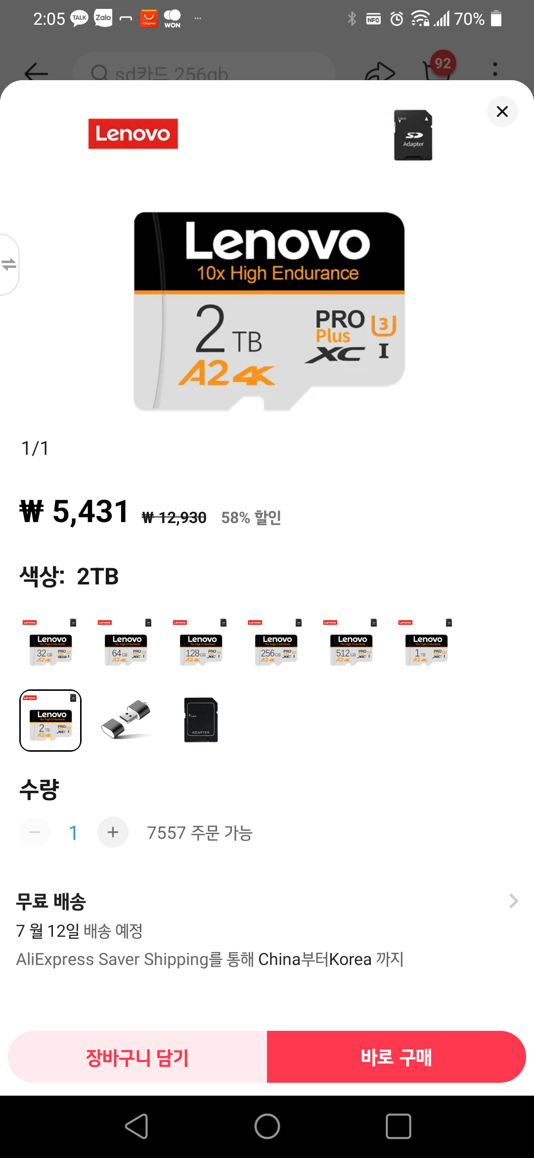 2테라바이트 마이크로 SD 카드가 5431 원이다 삼성전자, SK 하이닉스는 아예 생산도 하지 못하는 고용량 메모리 카드다