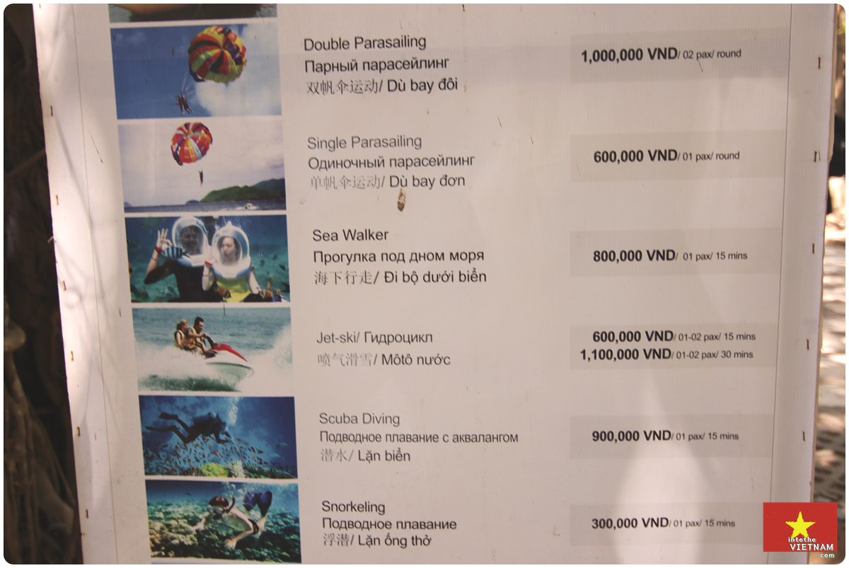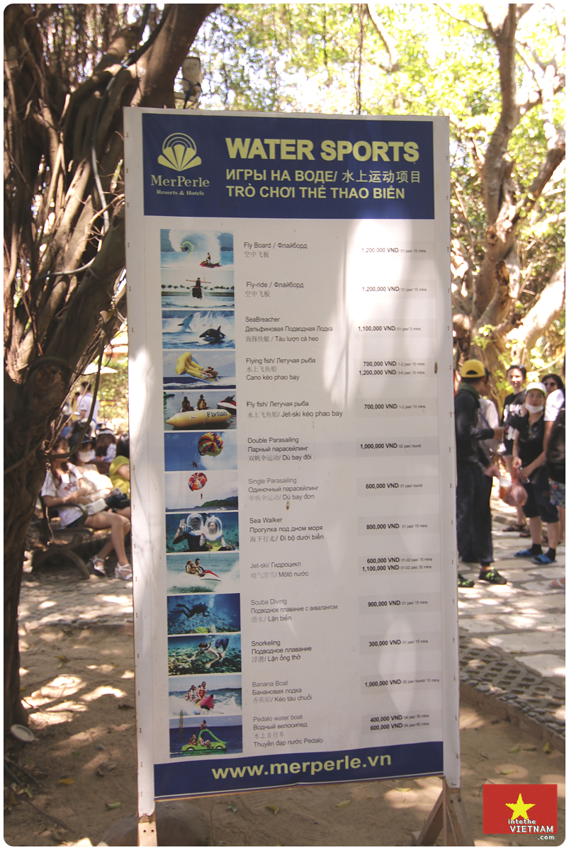 베트남 나트랑 "머드 리조트"의 워터스포츠 가격은?