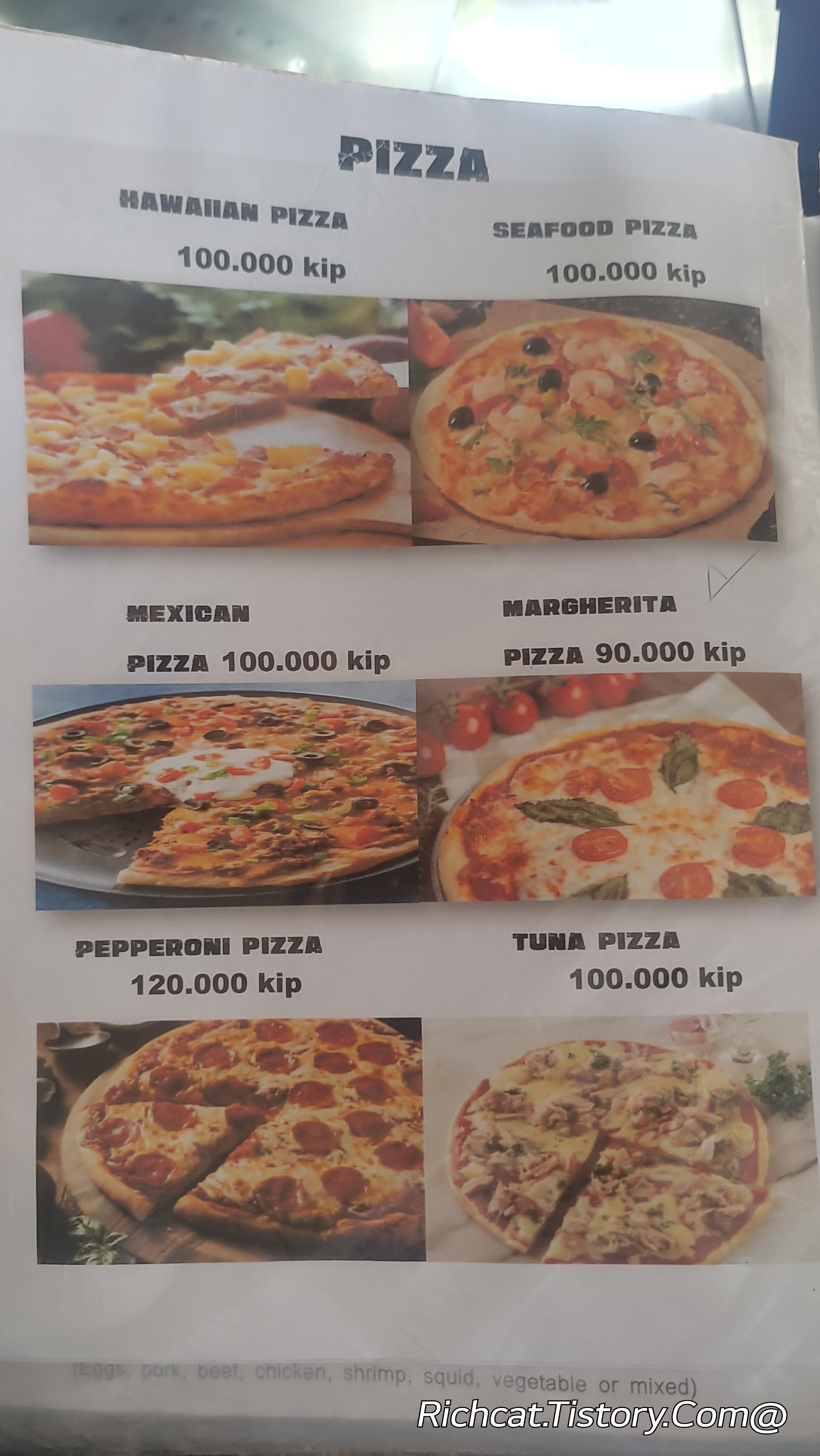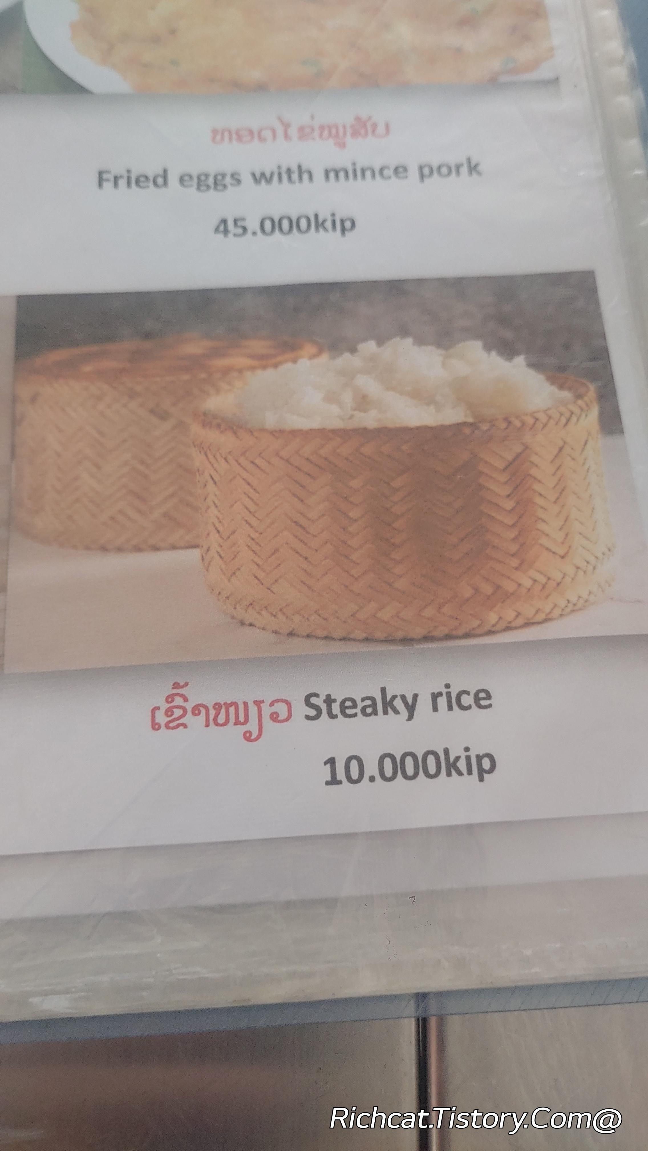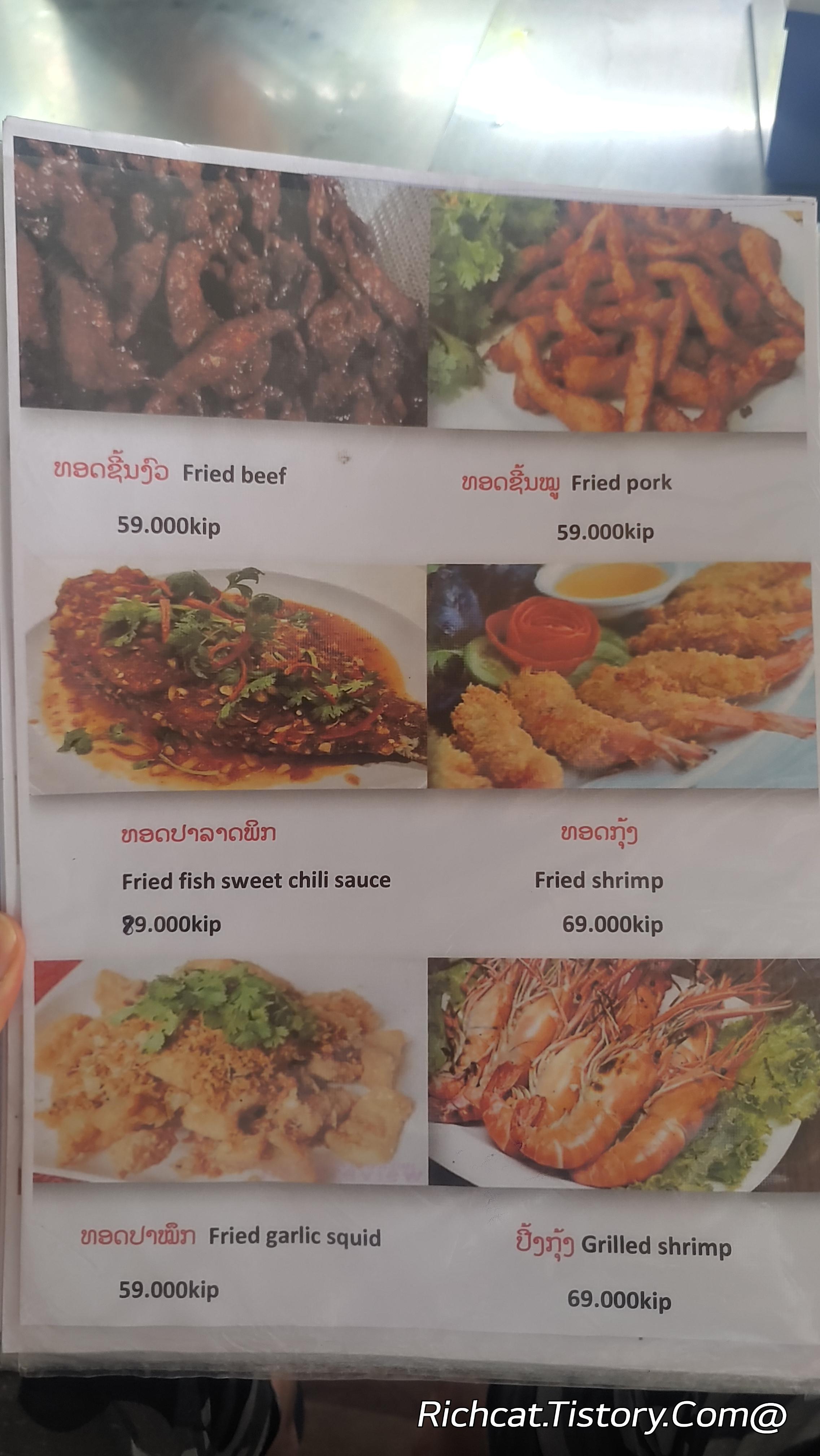 라오스 방비엥 음식점 가격표.