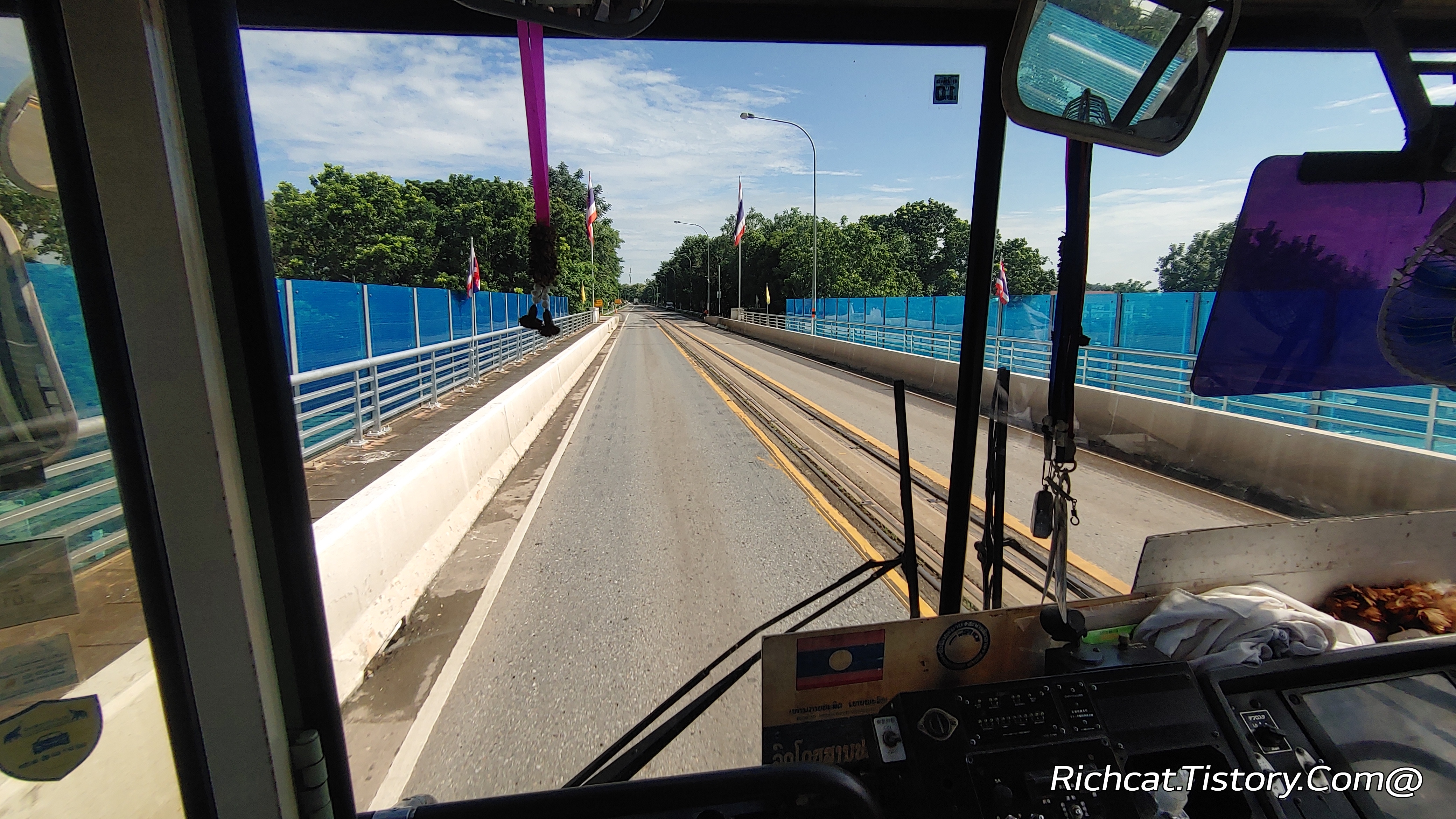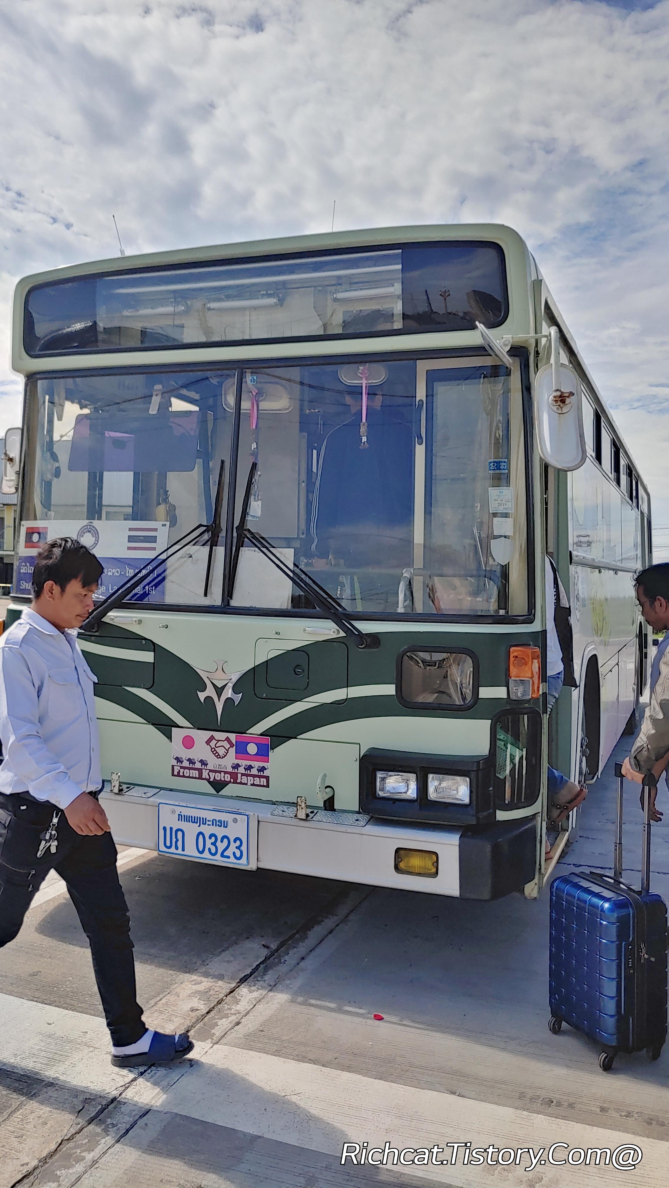 국경(라오스~태국 우호의 다리)을 넘는 오래되 버스. ^&^