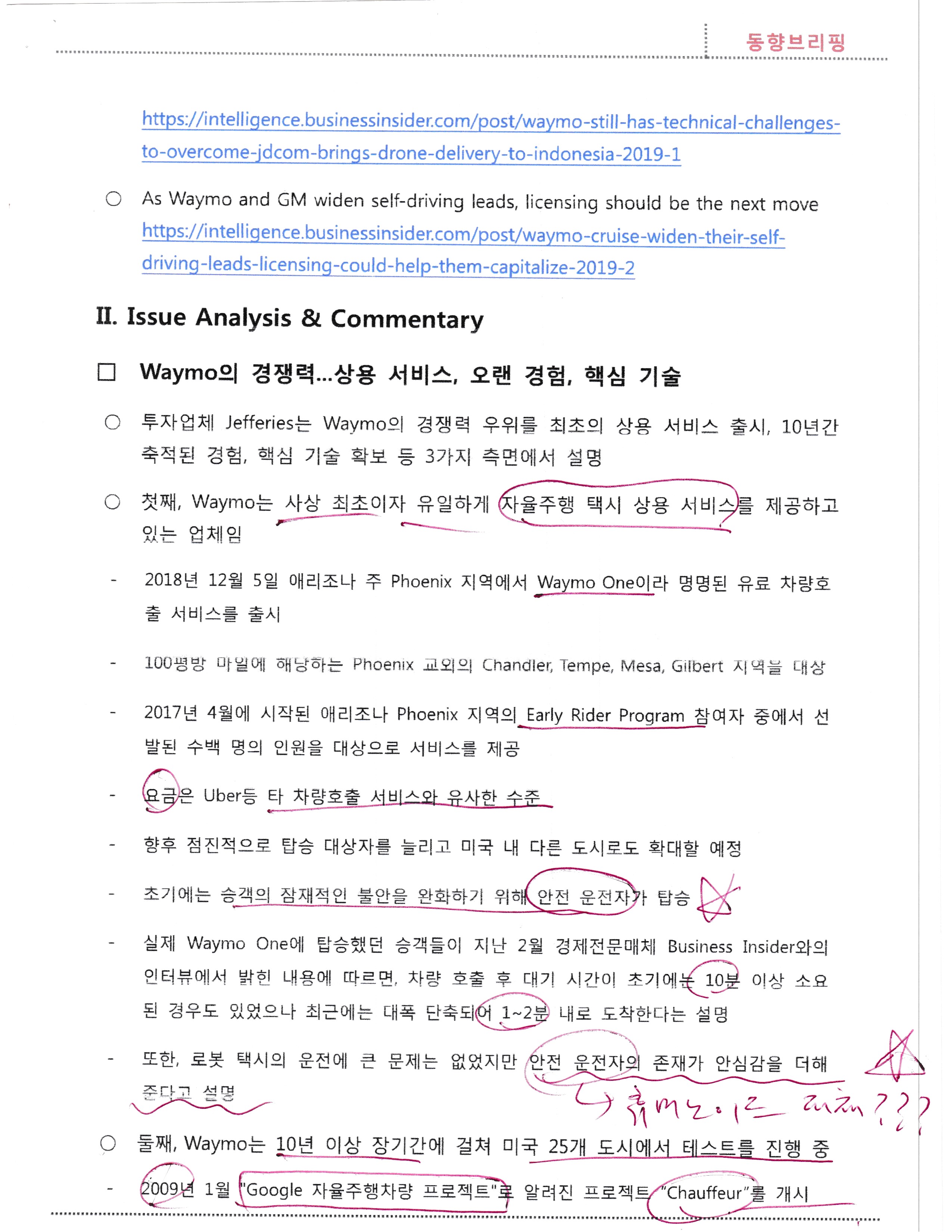 ★★★자율주행차량 분야의 선두주자 웨이모,waymo,의 경쟁력 평가,