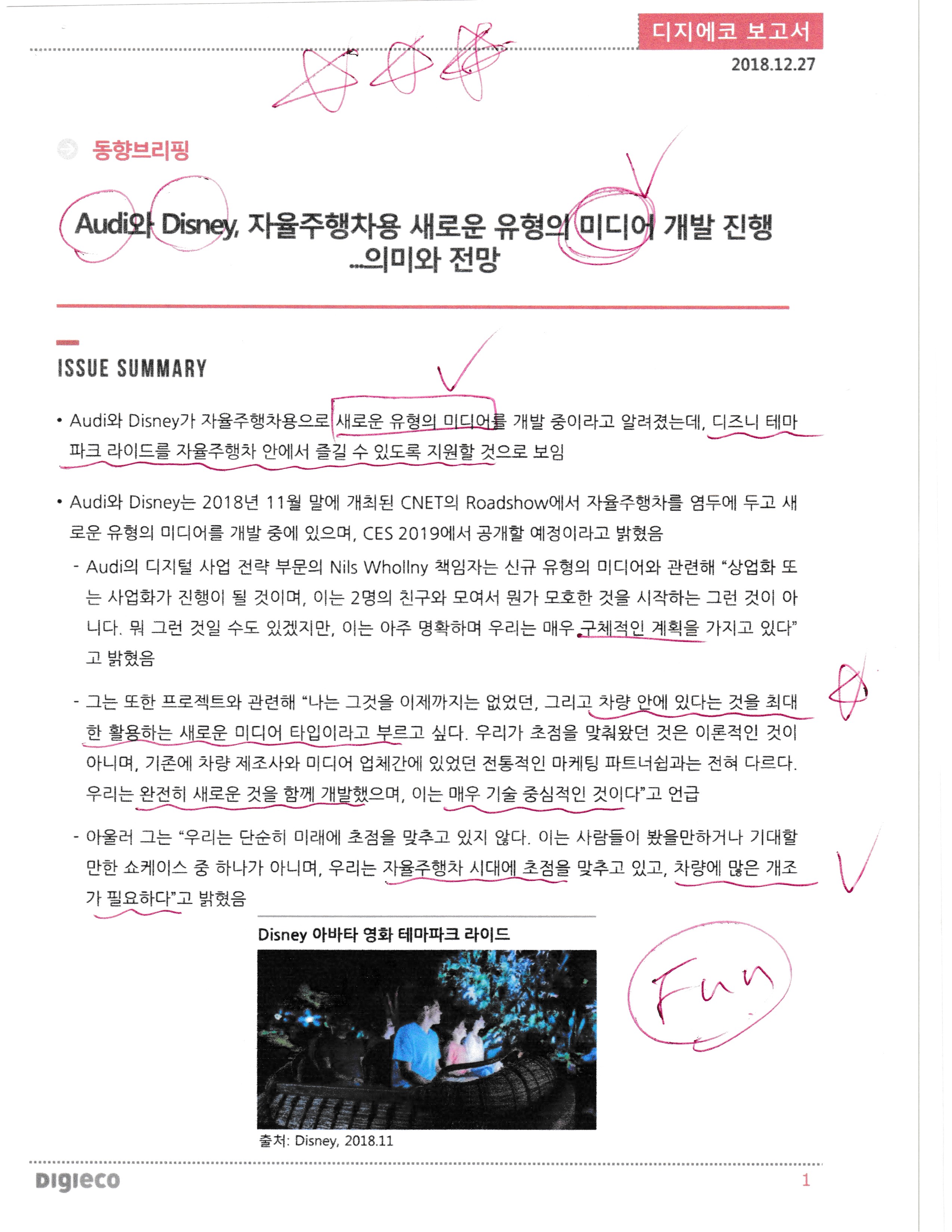★★★아우디와 디즈니, 자율주행차용 새로운 유형의 미디어 개발 진행, 의미와 전망,