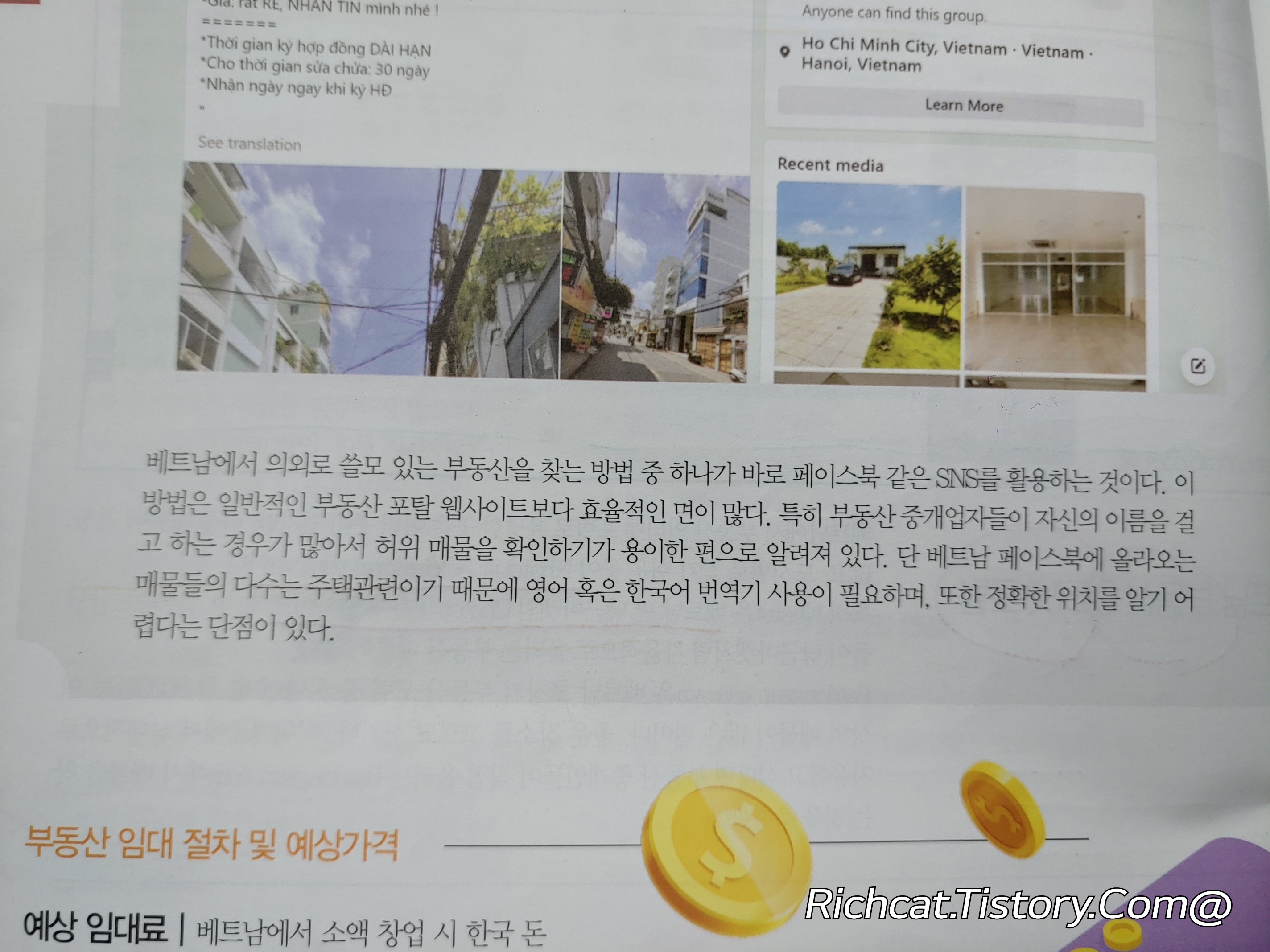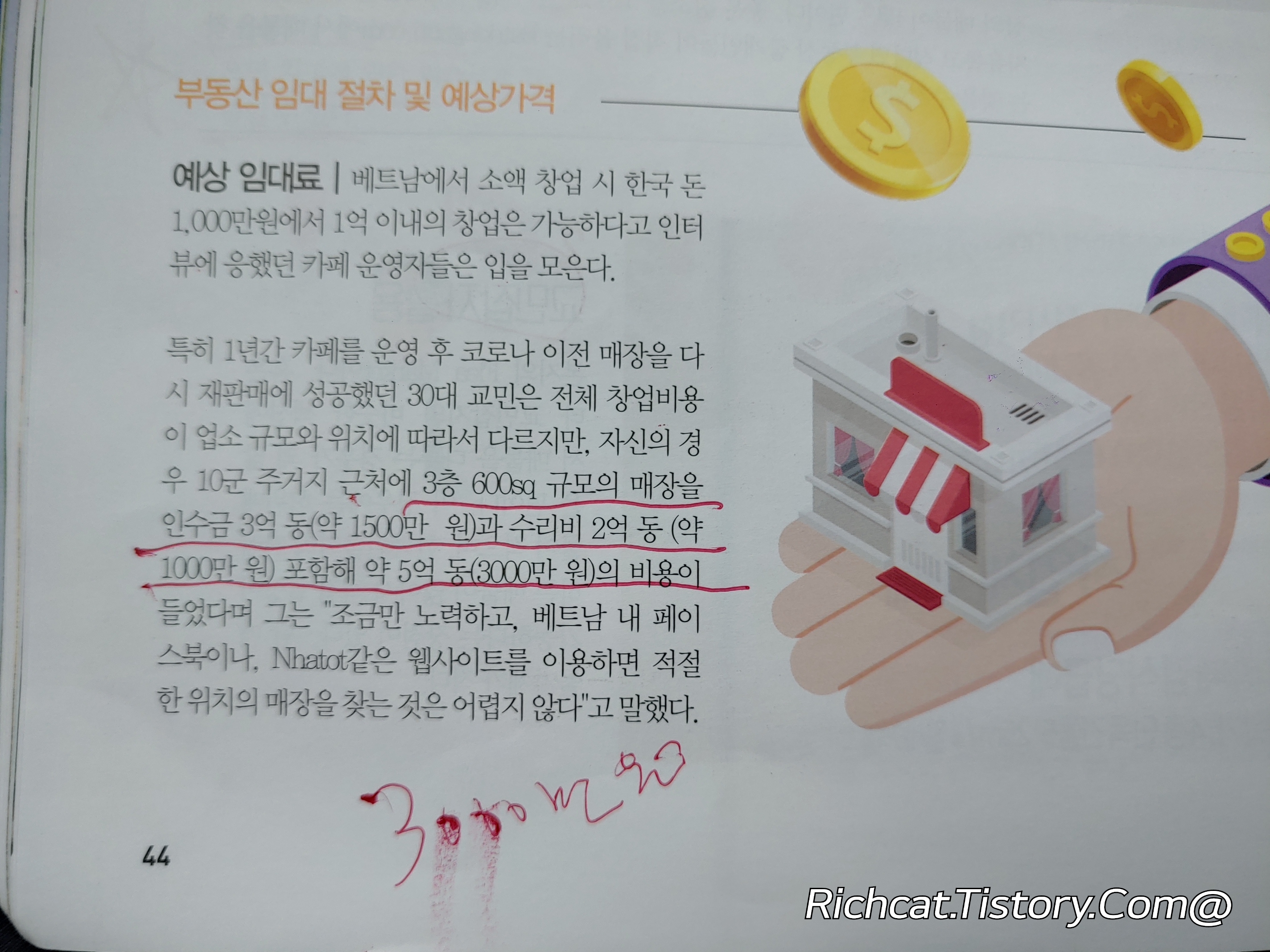 호치민 커피창업의 예상임대료