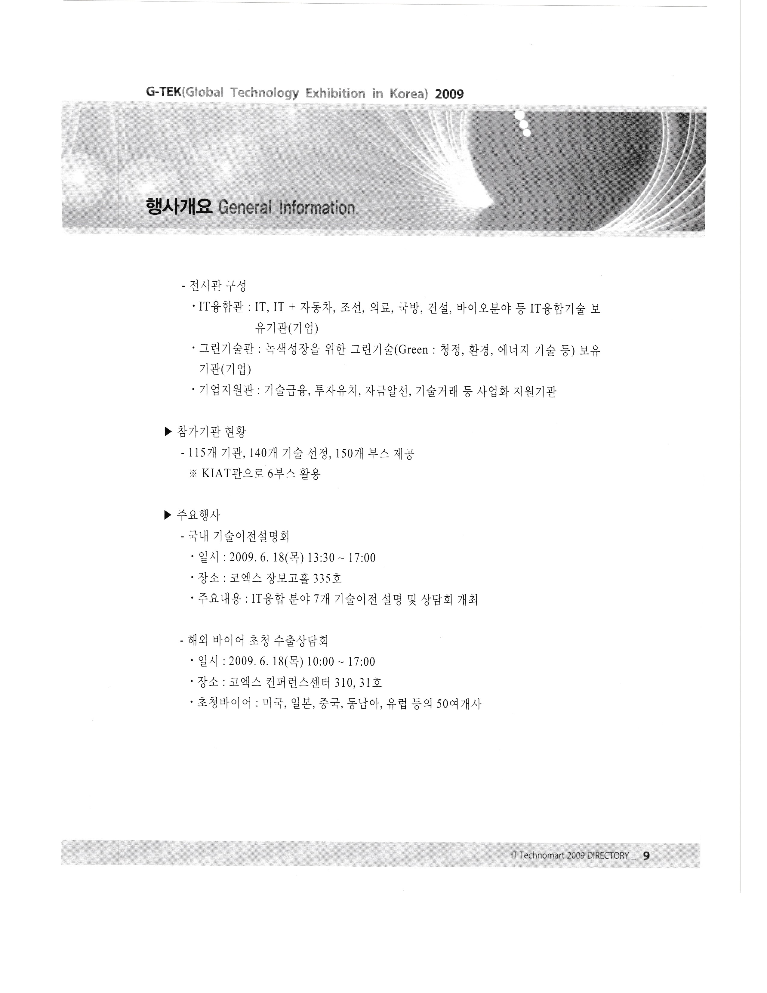 | G-TEK, 2009 디렉토리 -3 Global Technology Exhibition in KOREA, (0) | 2019.04.15 |