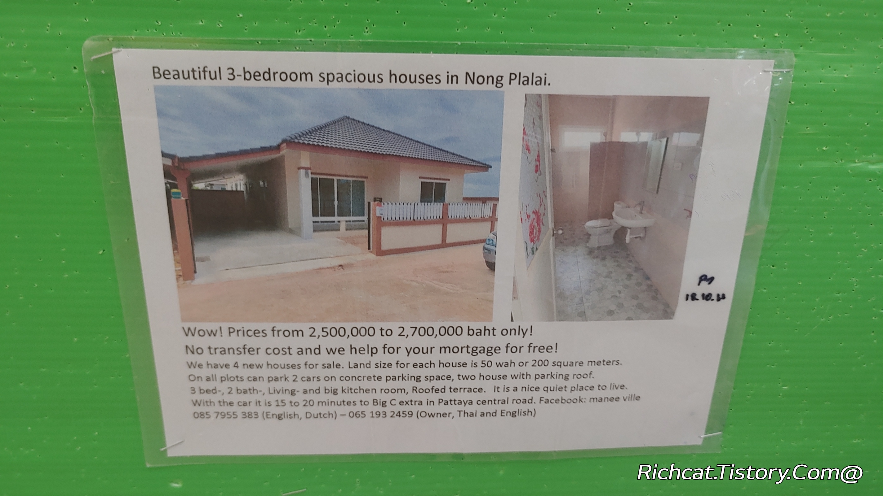 싱글하우스 4백만 바트 . 대략 1억 5천만원.