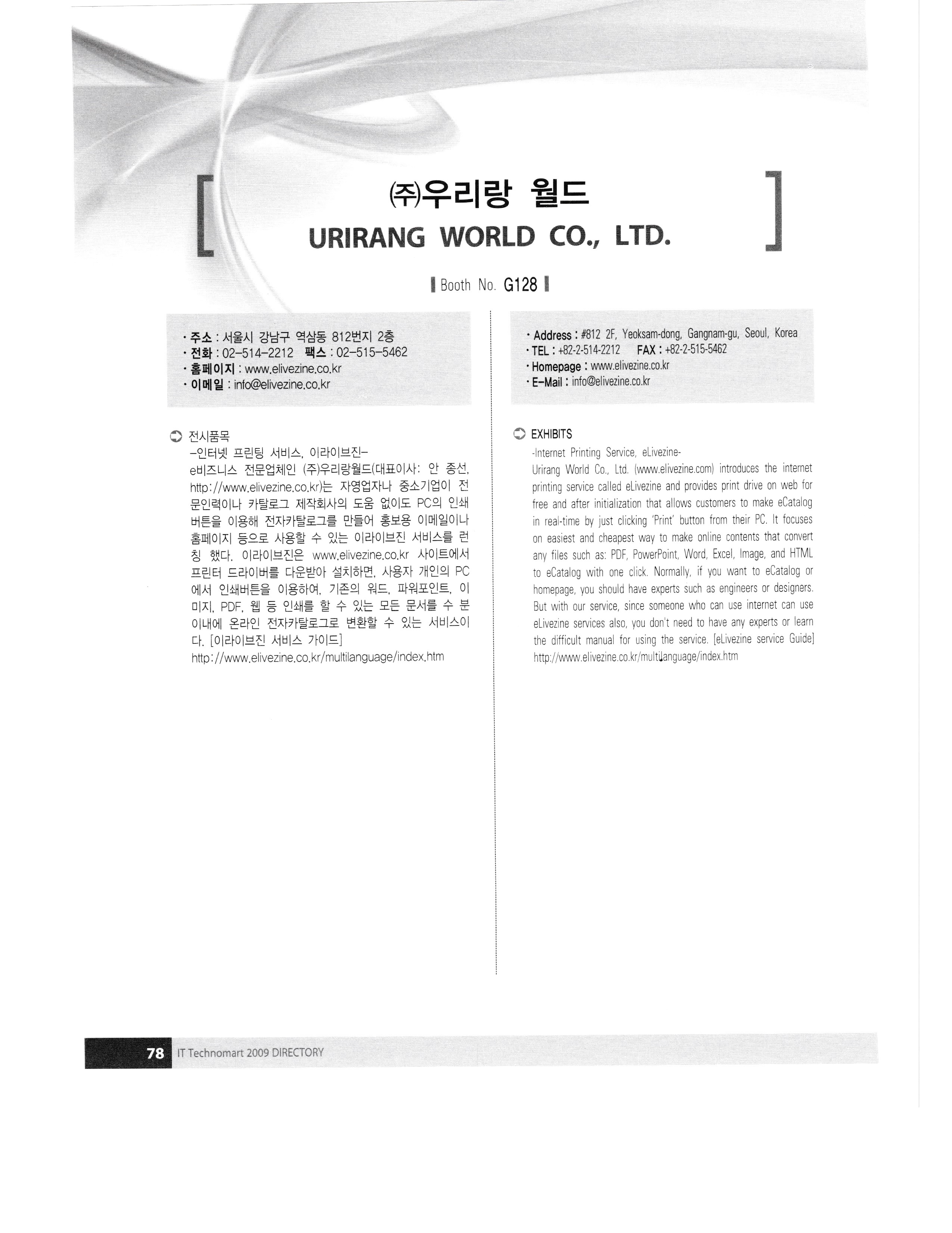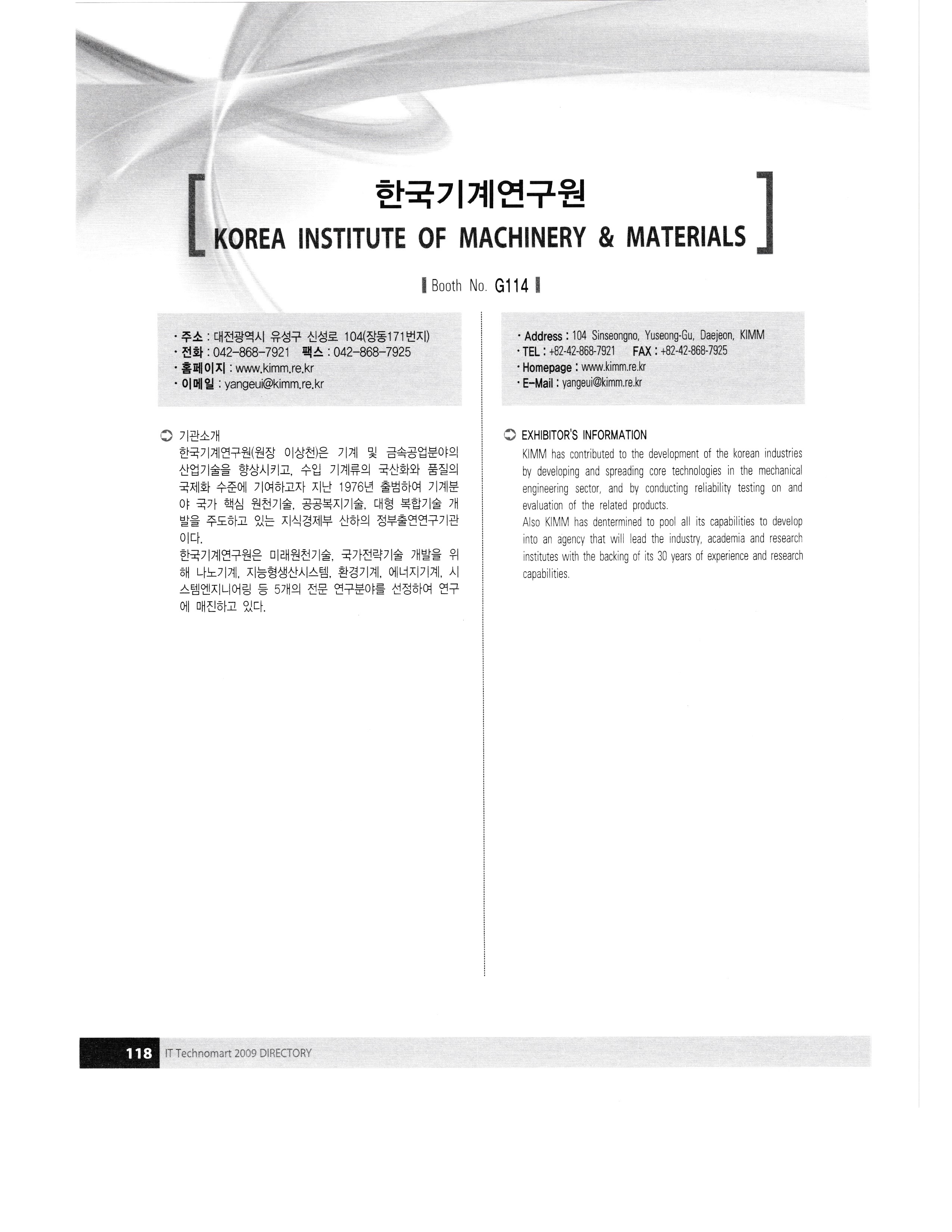 G-TEK, 2009 디렉토리 -4 Global Technology Exhibition in KOREA,