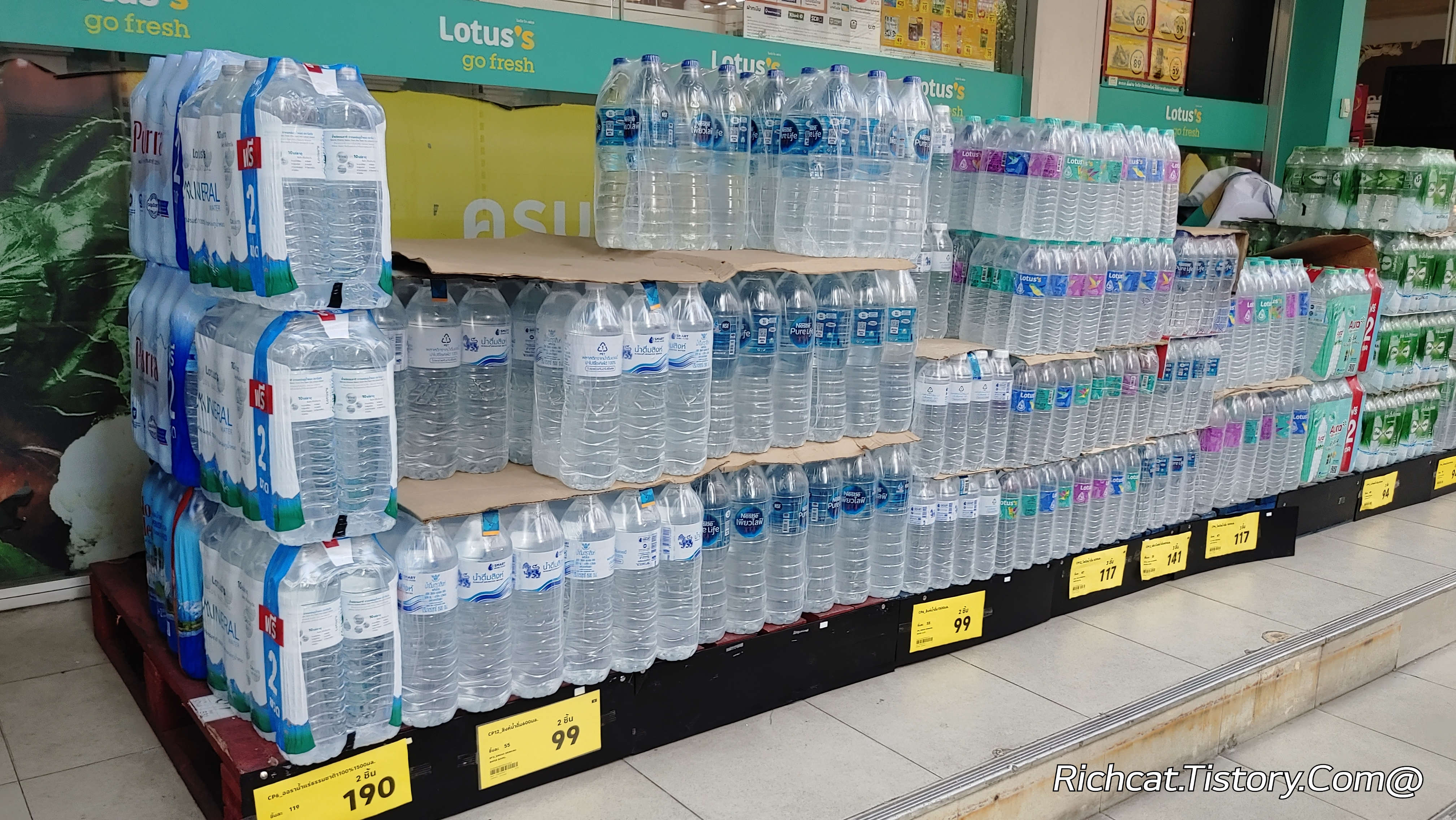 방콕 변두리 길거리 물가. 생수가 한국보다 비싸다.