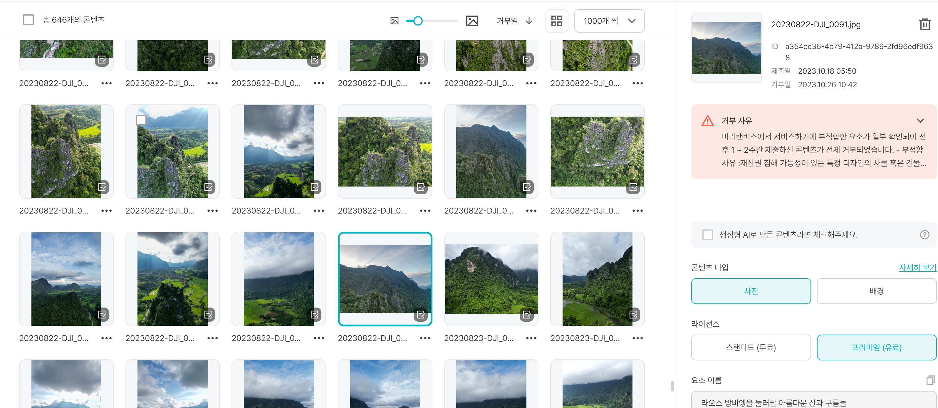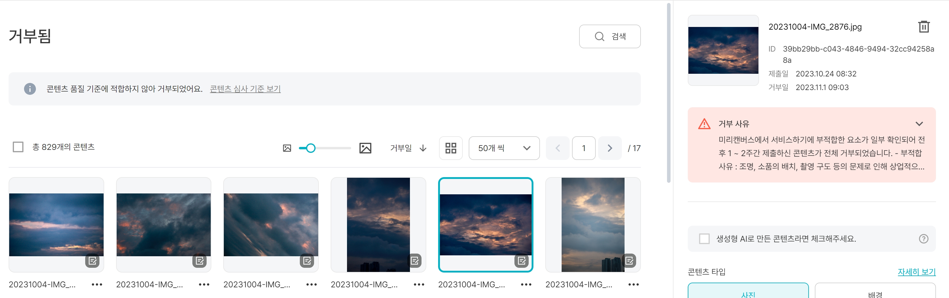 그리고 거부를 하도 많이 하니까...심지어 업로드한 사진 전체를 일괄거부했다. ㅋㅋㅋ