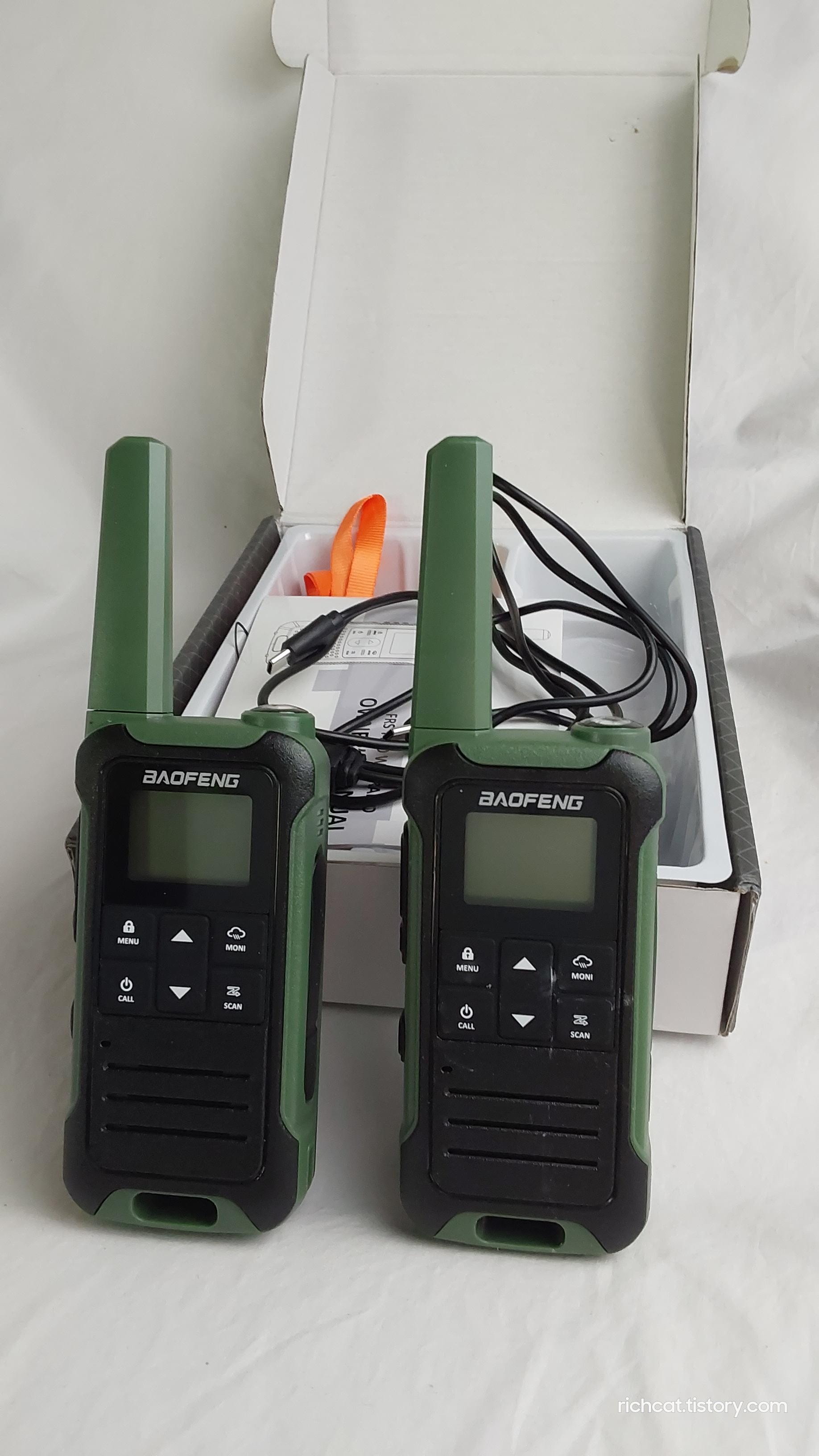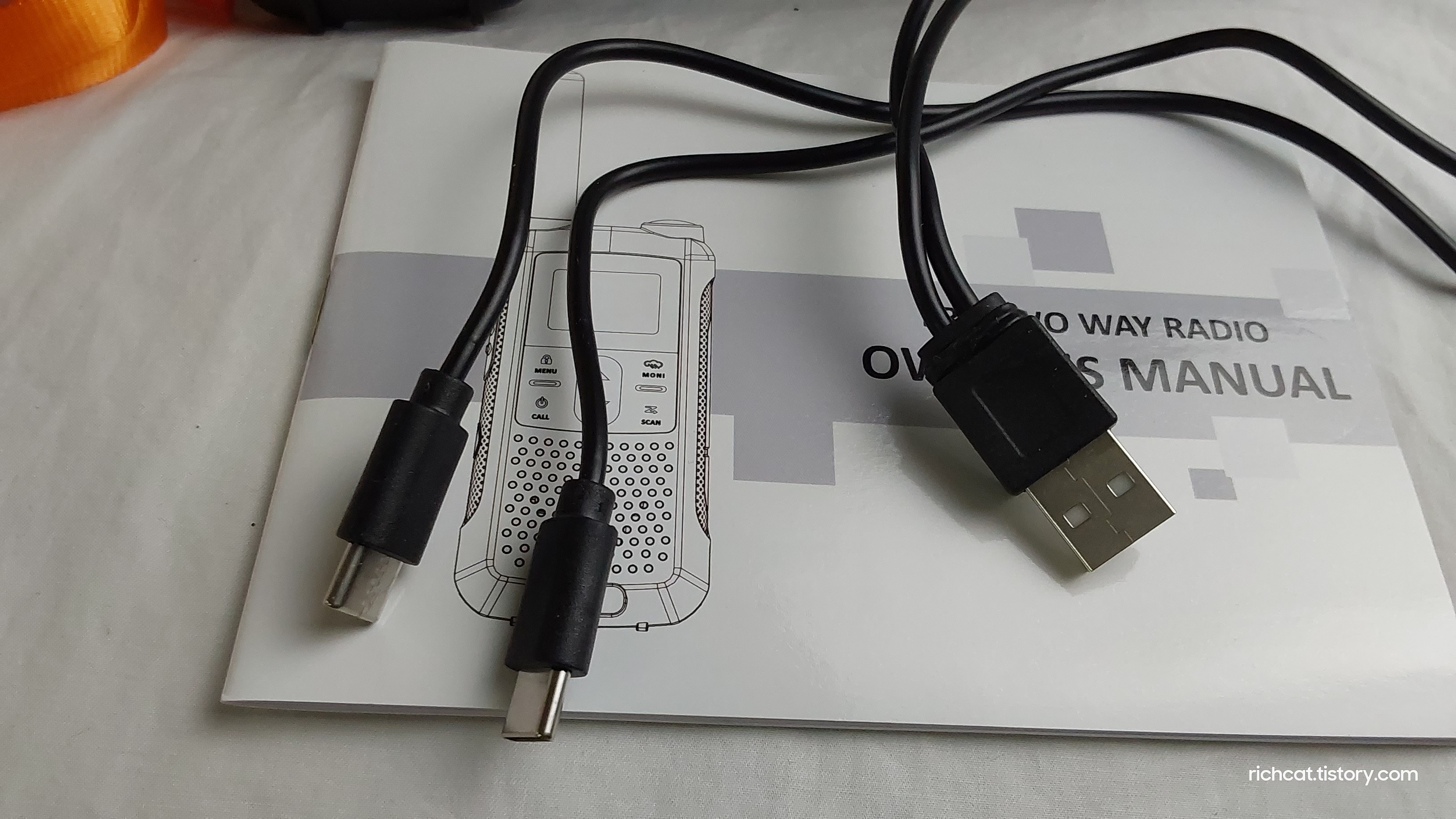 게다가 두 대의 무전기를 한꺼번에 하나의 USB 충전으로 충전할 수 있게 함께 동봉된 충전선도 아주 감각적이다.
