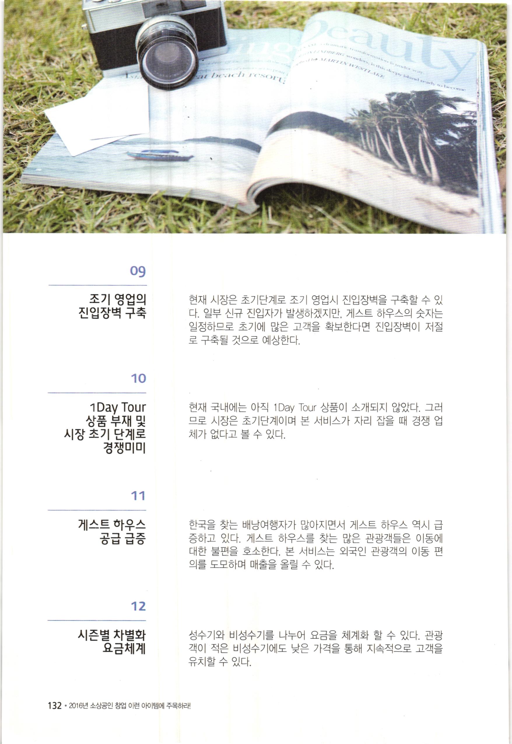| 소상공인 창업 아이템. 2016 : 6. 중국 관광객을 위한 1박2일 자동차여행 패키지 등 (0) | 2023.12.02 |