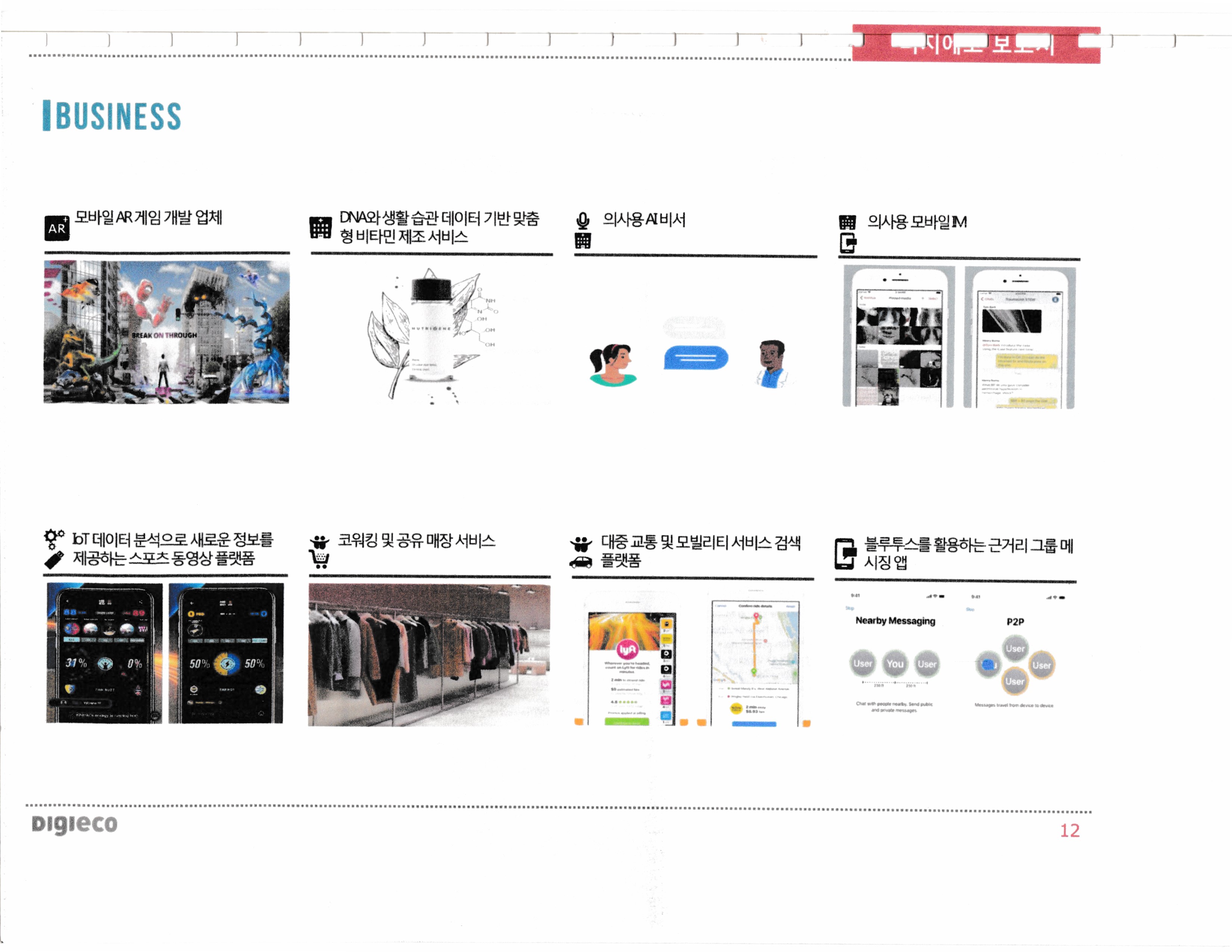Augmented reality UI for autonomous navigation vehicle, artificial intelligence for creating object and animal images, time related neural network capable of recognizing the change process of objects according to time, artificial intelligence capable of recognizing objects in images based on voice description, 4D Lidar, Road Surface Detection System for Autonomous Driving Carriage ***, Surface Transmission Radar Sensor for Autonomous Driving Car ***, MR Game, Lifestyle Customized Vitamin Manufacturing, Sports Video Platform, Coworking and Shared Stores Services, near-group messaging apps, blood analysis, smart mirrors, electric wheelchair and body parts, revolving lathes, Mercedes Benz modular self-propelled vans,