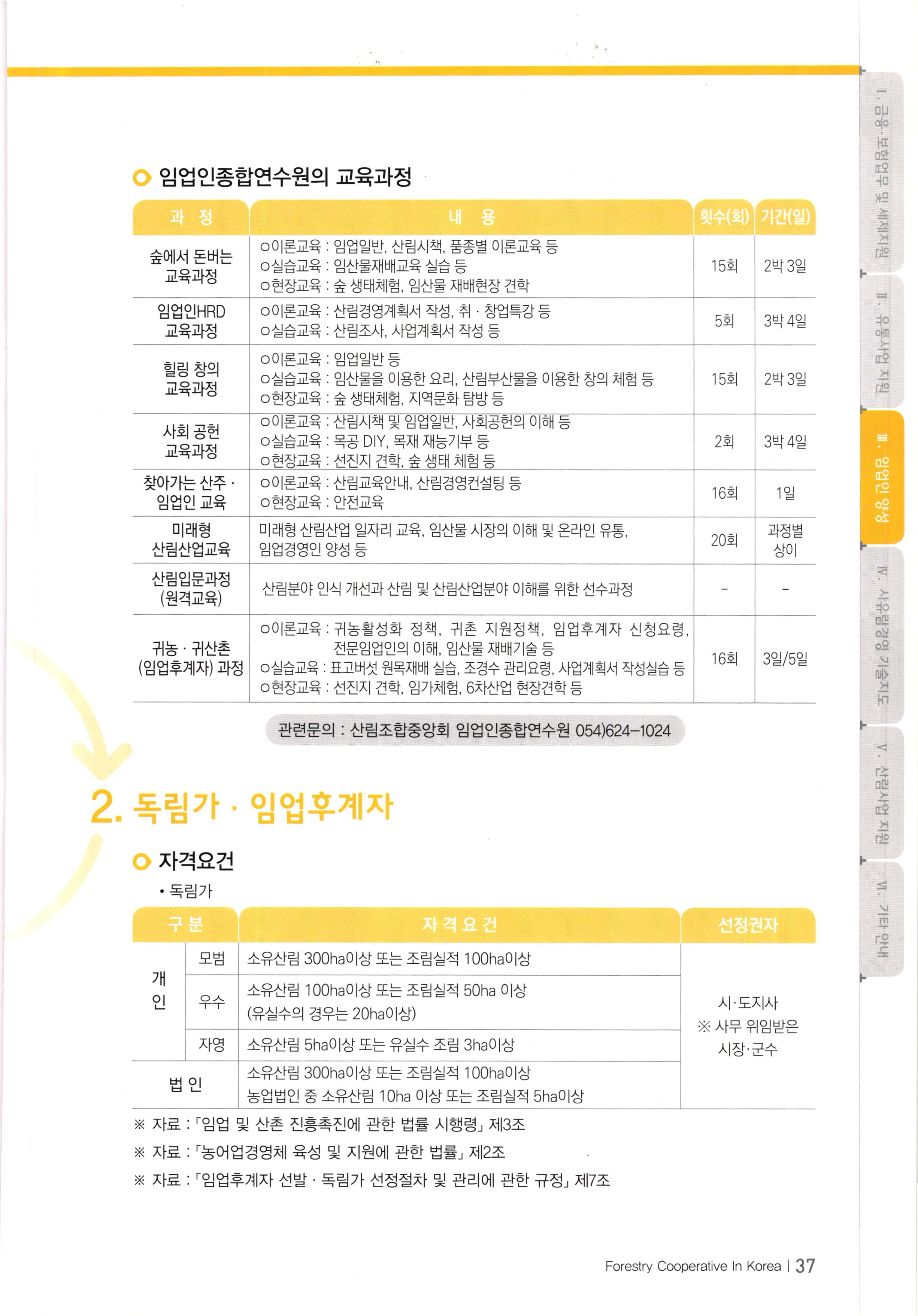 임업인 양성.