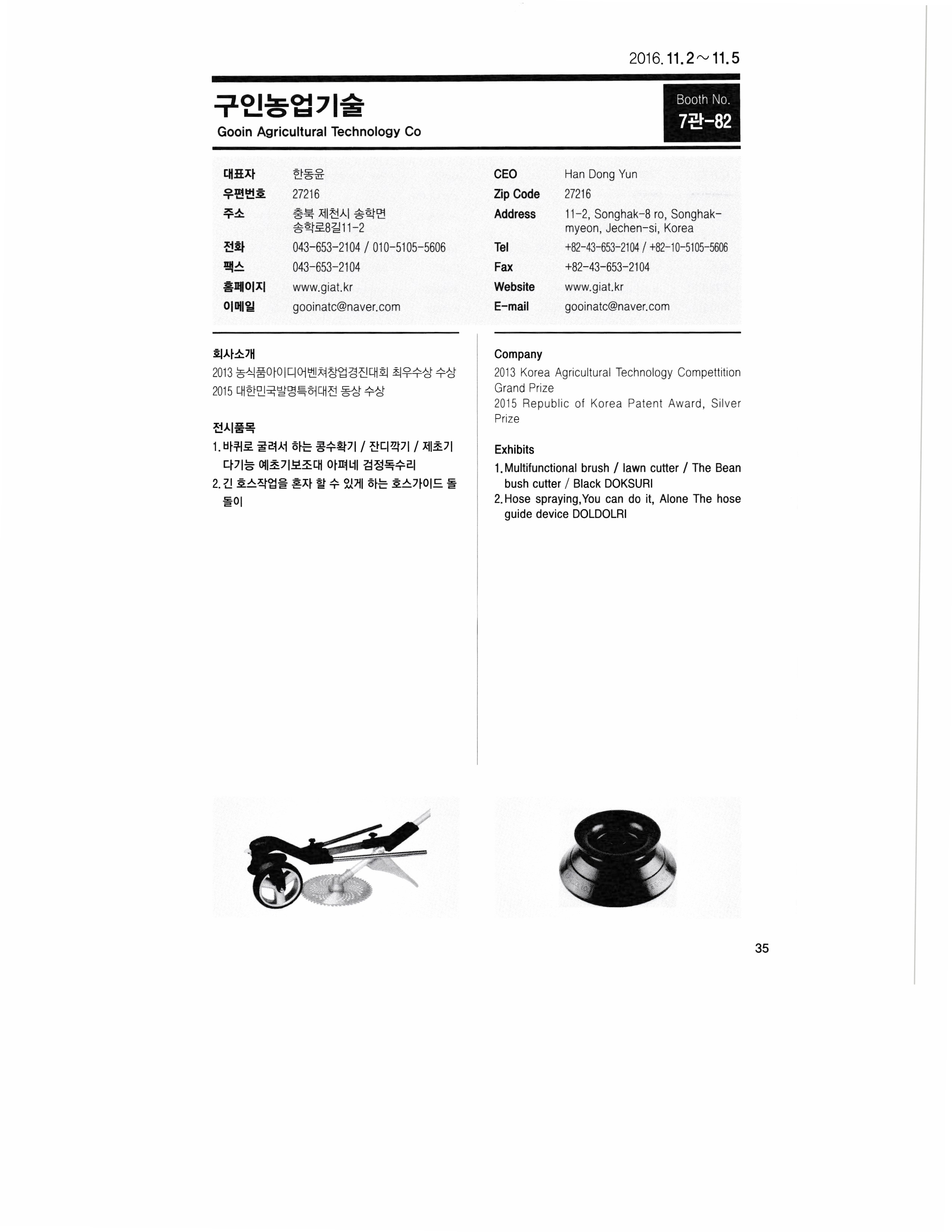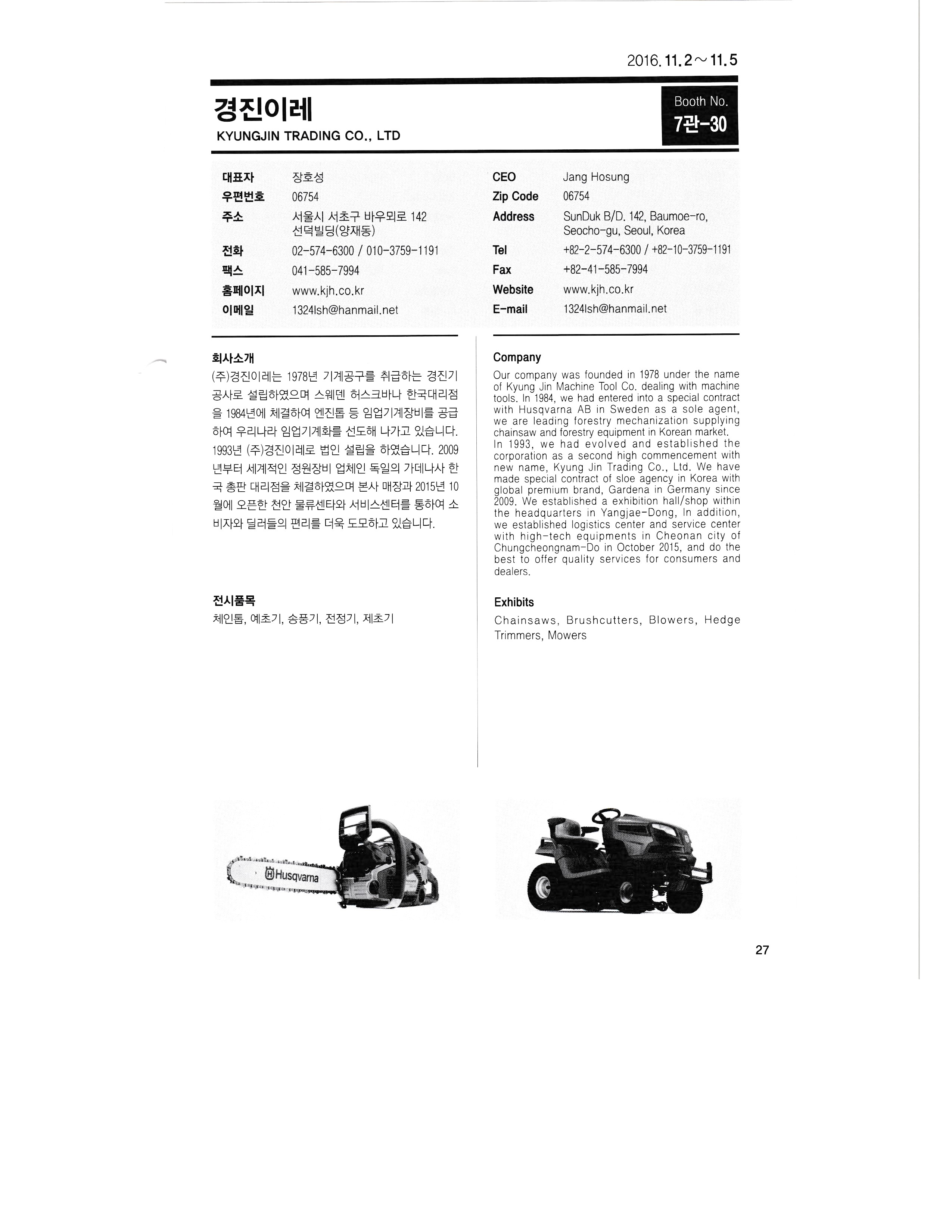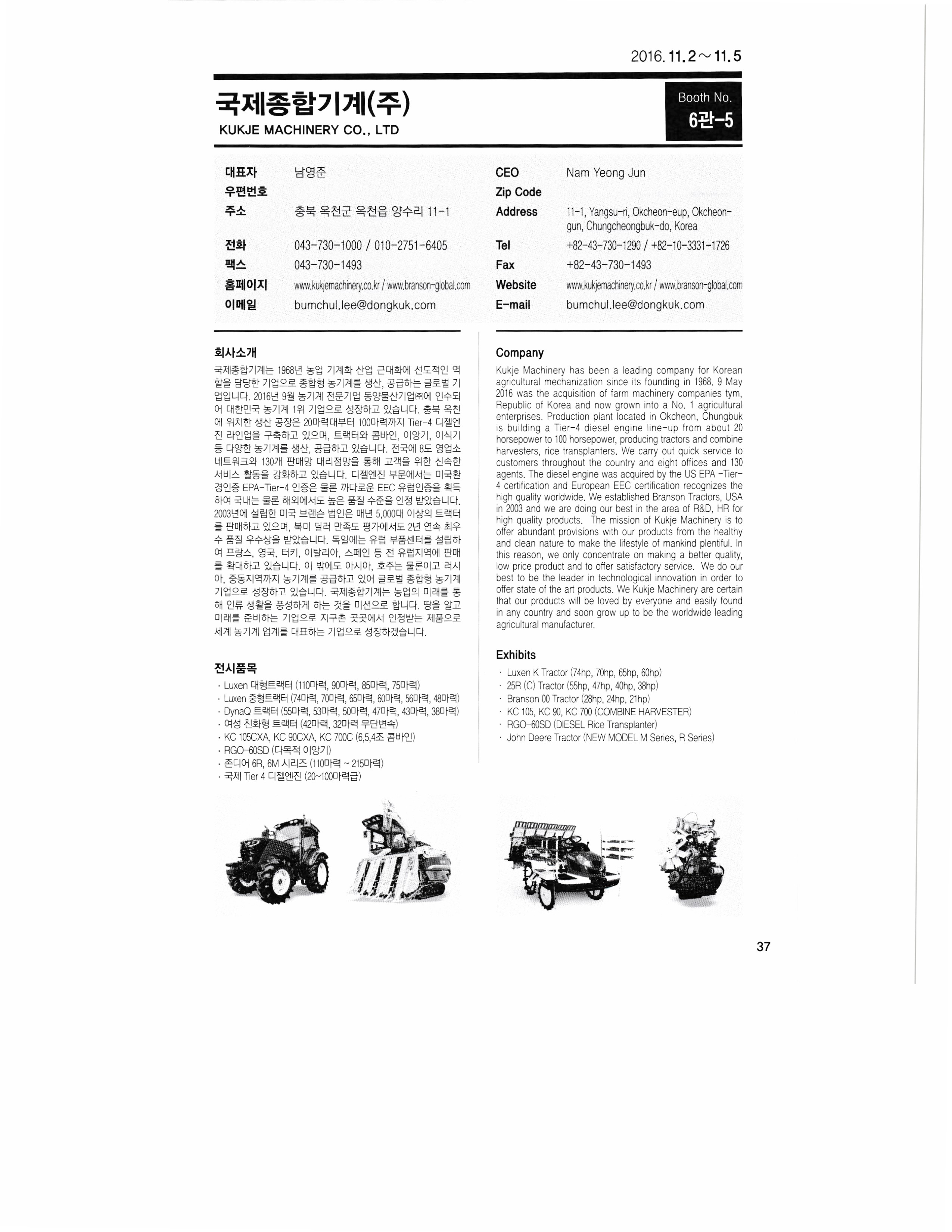 2016 KIEMSTA 대한민국 국제농기계자재 박람회 참가업체 디렉토리 - 1