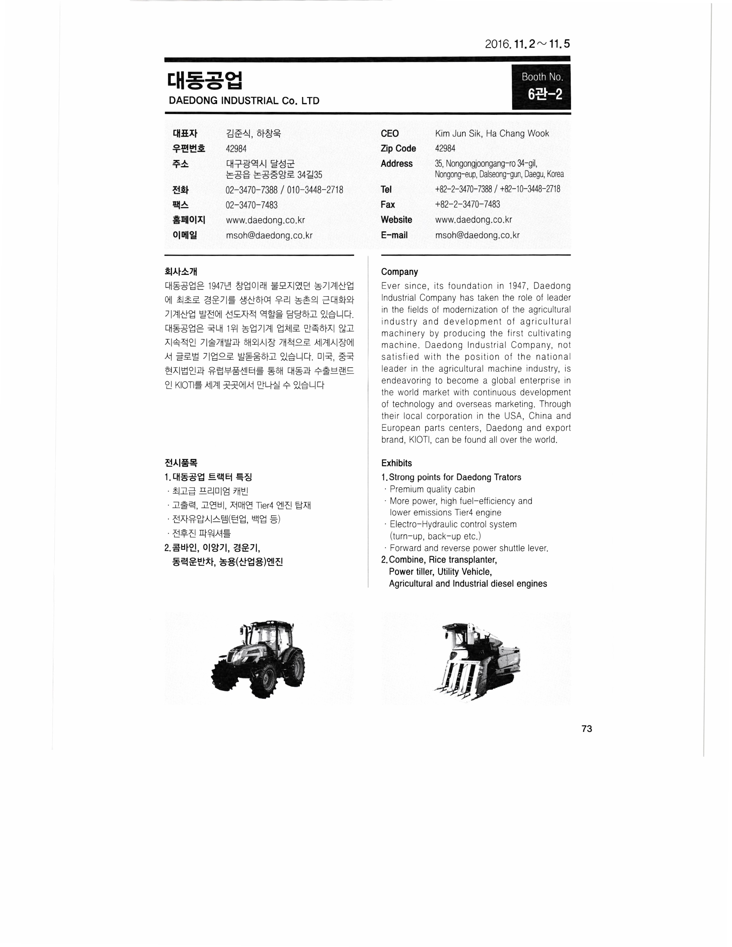 2016 KIEMSTA 대한민국 국제농기계자재 박람회 참가업체 디렉토리 - 2