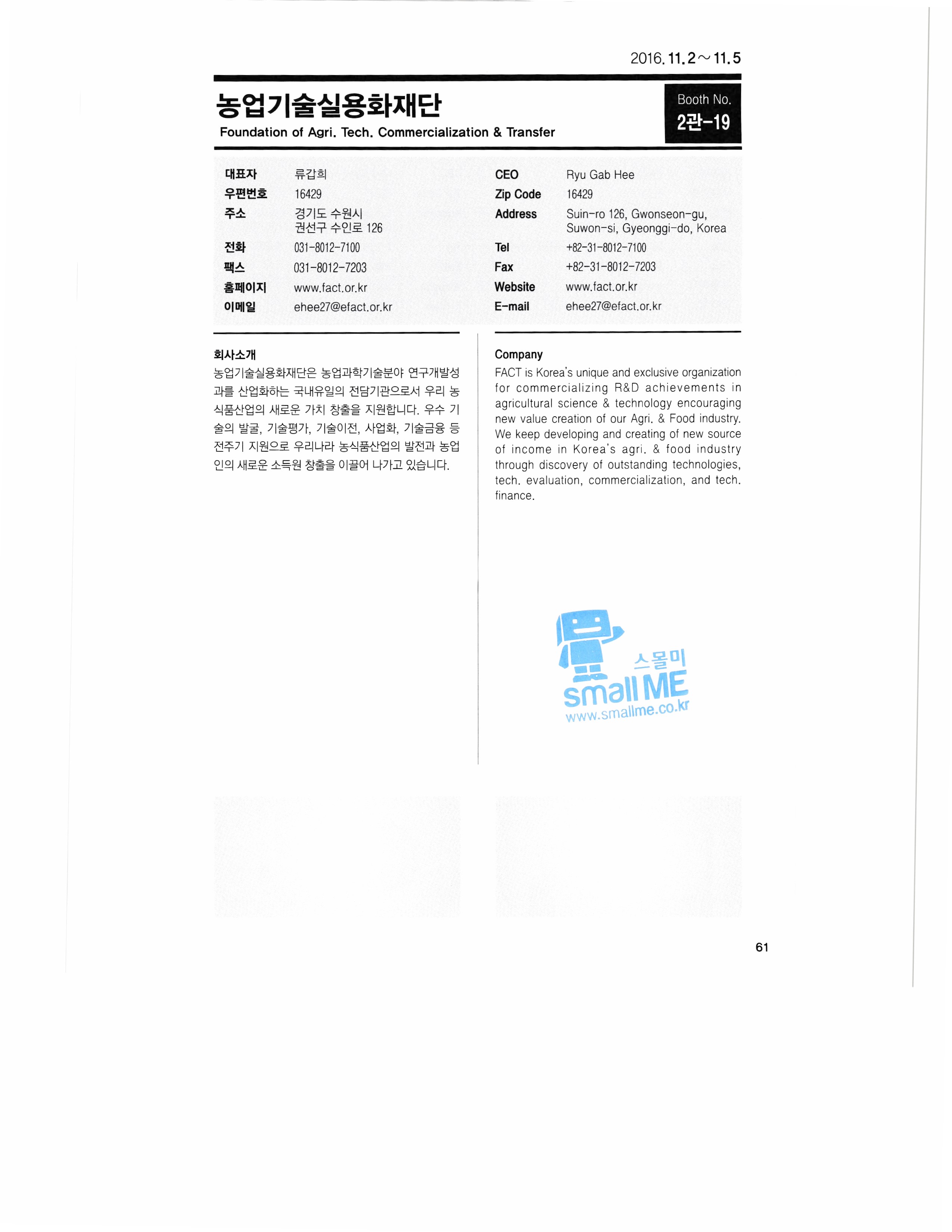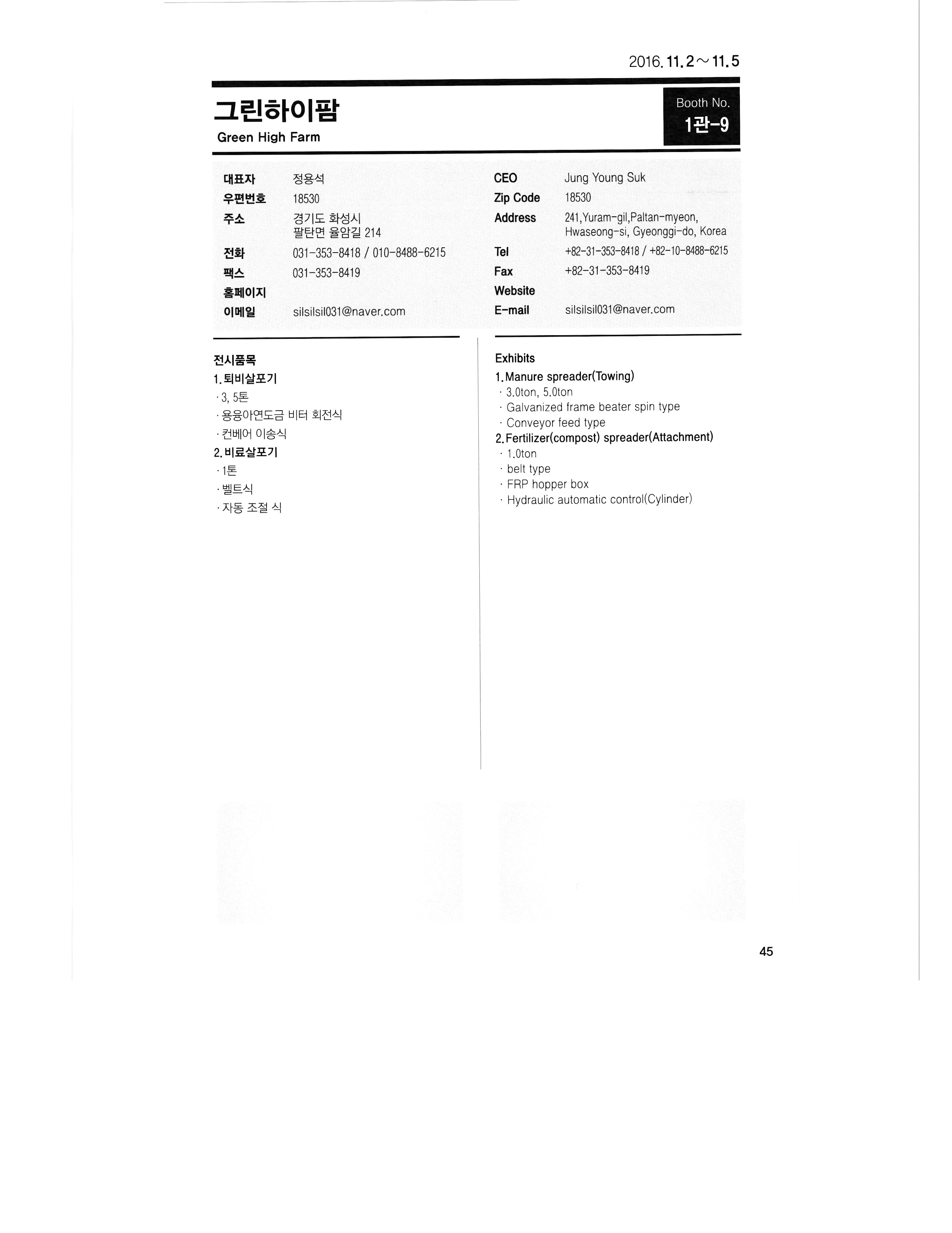 | 2016 KIEMSTA 대한민국 국제농기계자재 박람회 참가업체 디렉토리 - 1 (0) | 2019.05.07 |