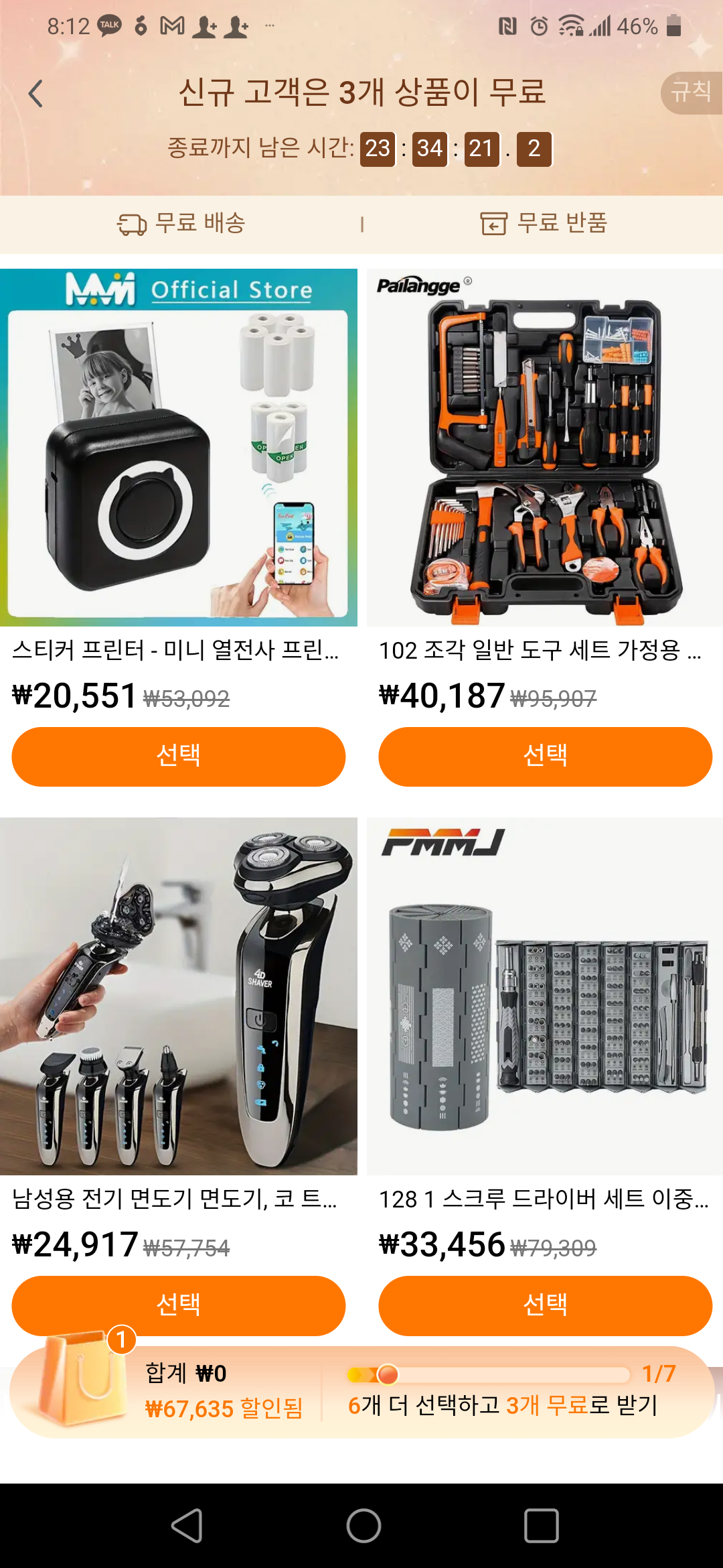 처음에 7개를 고르면 그 중에 랜덤으로 3개를 회원가입 경품으로 준다고 판단했다.