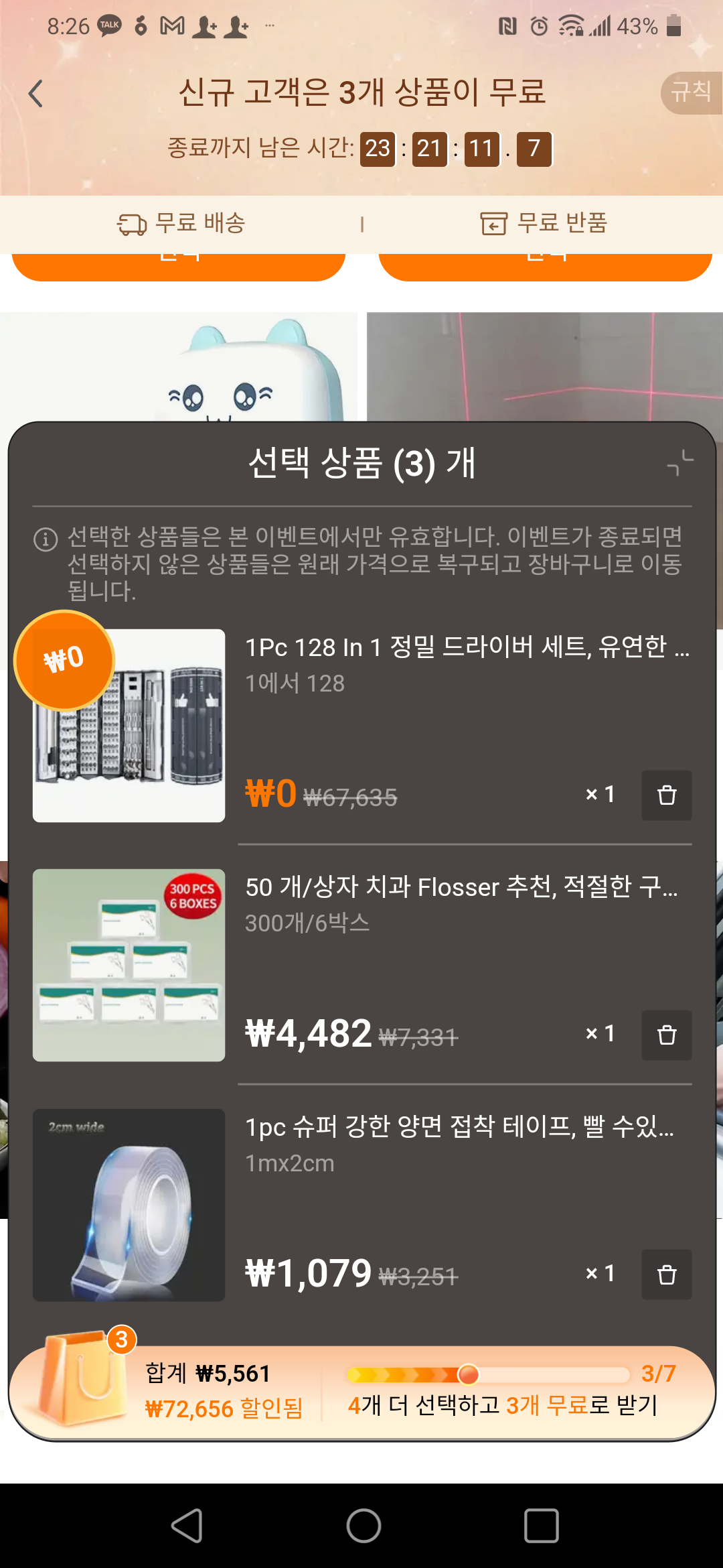 특히 3개의 무료제품을 준다는 미끼에 낚였다. ㅋㅋㅋ