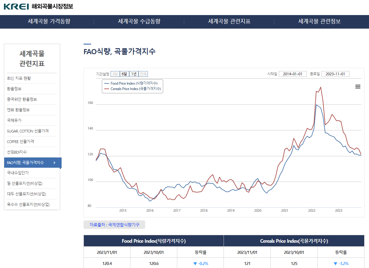 | 연도 | 전 체 | 쌀 | 보리쌀 | 밀 | 옥수수 | 콩 | 서 류 | 기 타 |