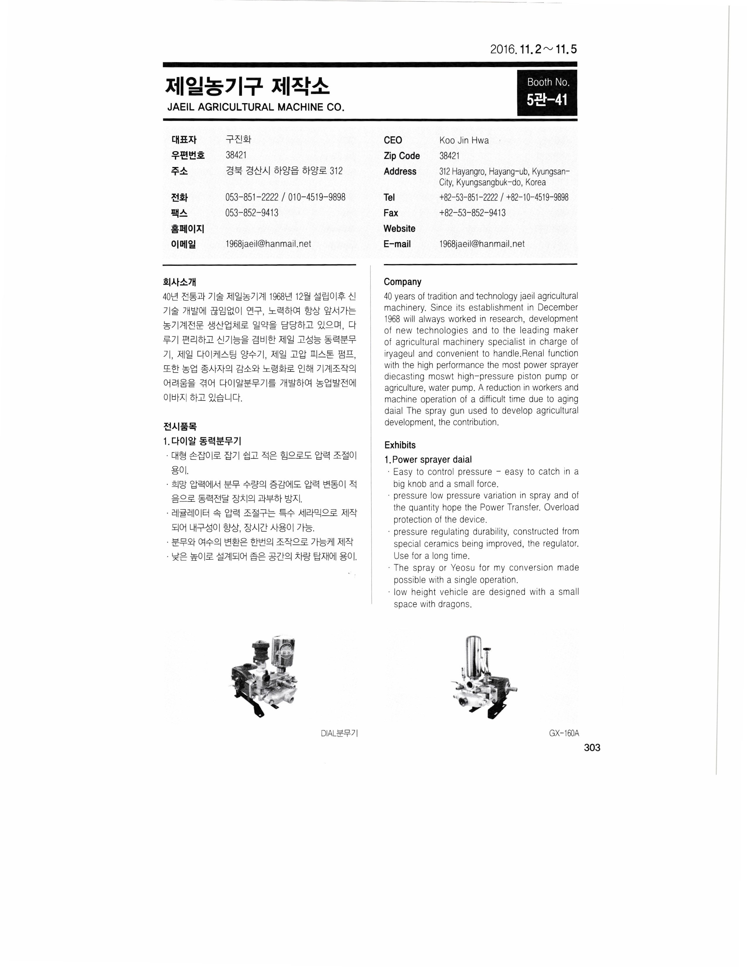 | 2016 KIEMSTA 대한민국 국제농기계자재 박람회 참가업체 디렉토리 - 10 대한민국, 국제농기계자재 박람회, 참가업체, 디렉토리, 농림축산식품부, 한국농기계공업협동조합,리치캣, (0) |