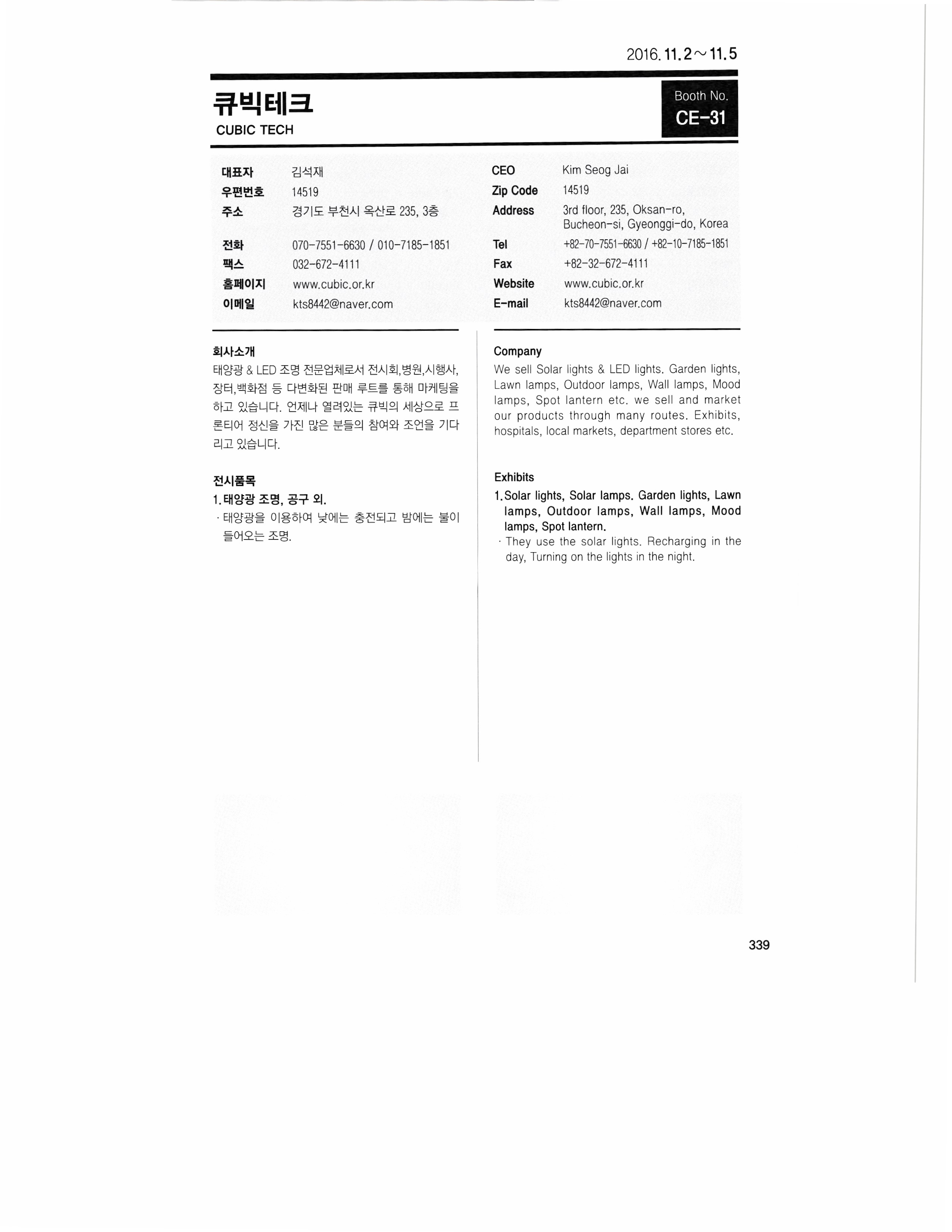 | 2016 KIEMSTA 대한민국 국제농기계자재 박람회 참가업체 디렉토리 - 11대한민국, 국제농기계자재 박람회, 참가업체, 디렉토리, 농림축산식품부, 한국농기계공업협동조합,리치캣, (0) |
