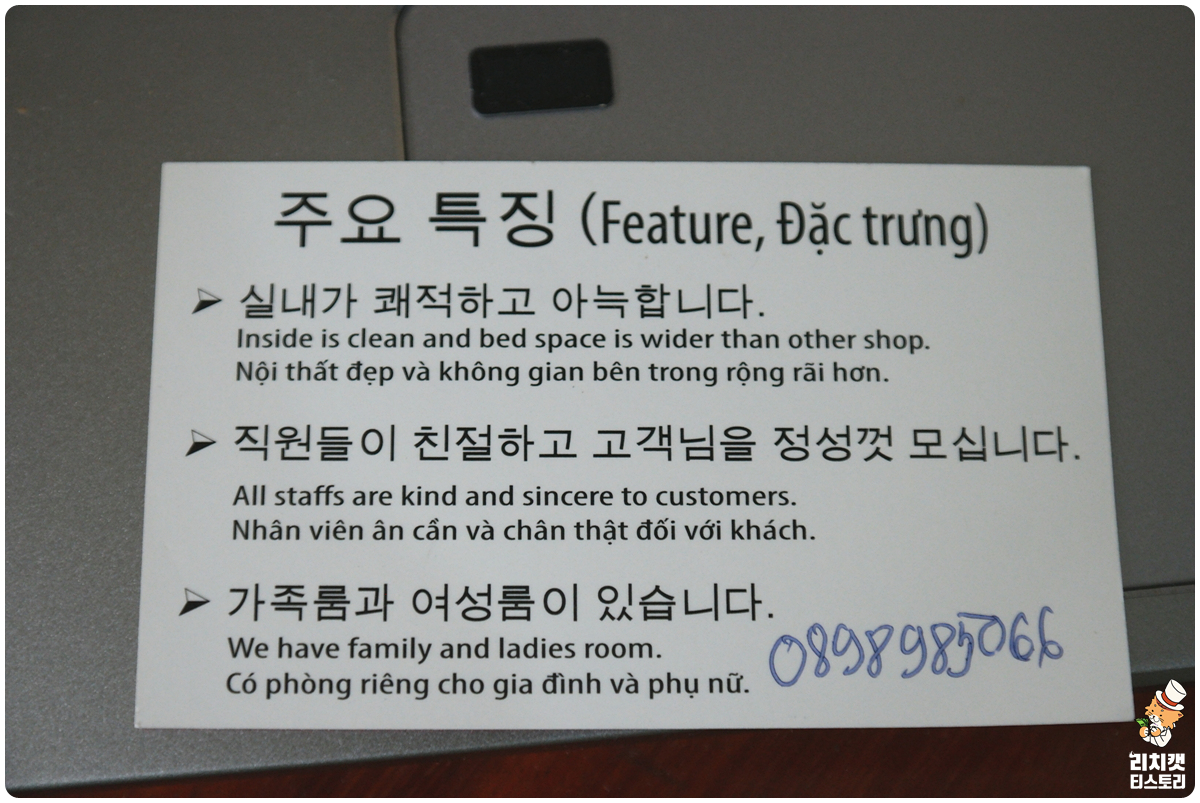 호치민 마사지. 스파 명함 그리고 술집 계산서.영수증 기록