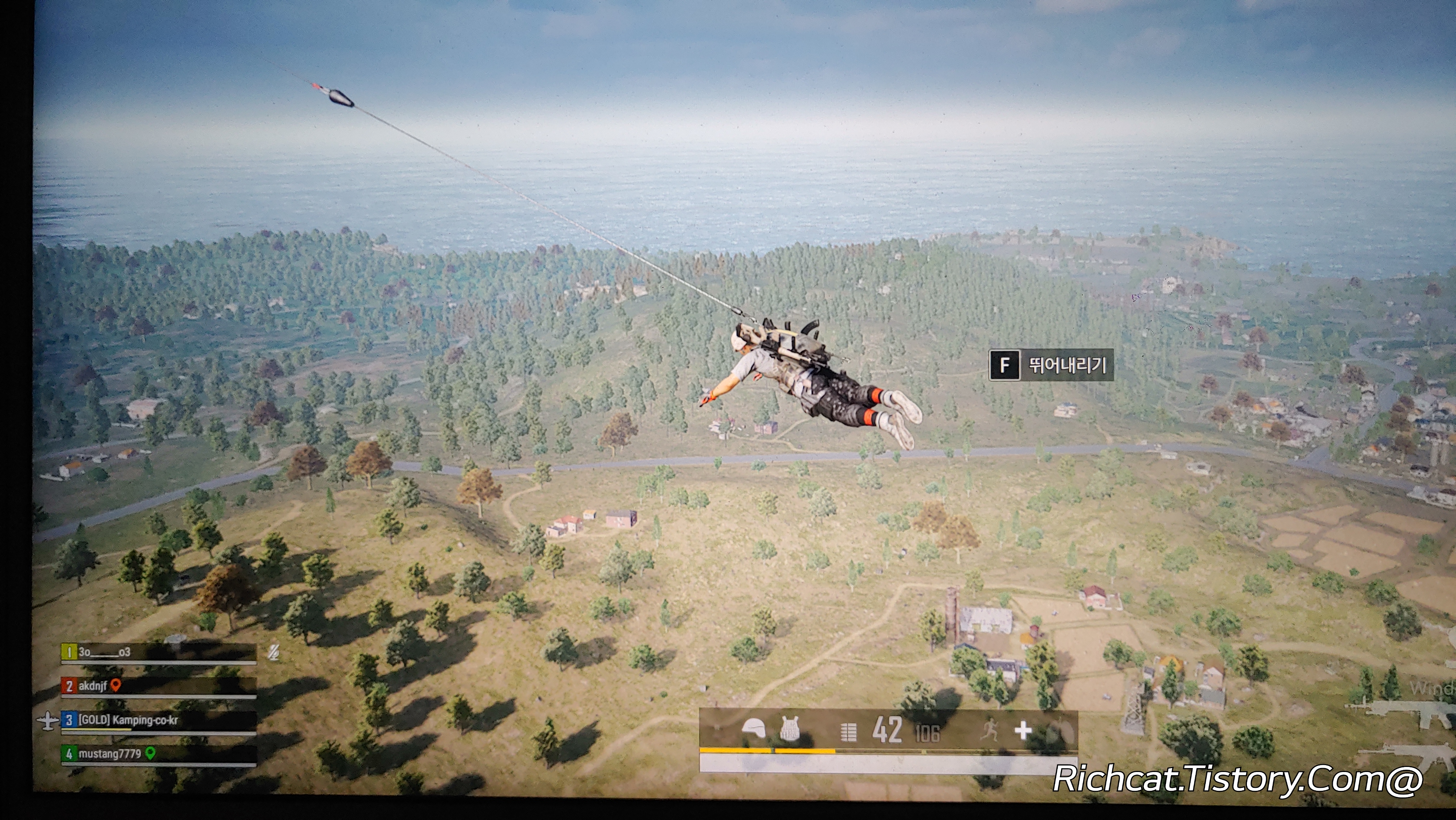 불터는 장갑차에서 나와 공중투하되어서 낙하산타고 내려온 보급상자 옆에 몸을 숨기고서..