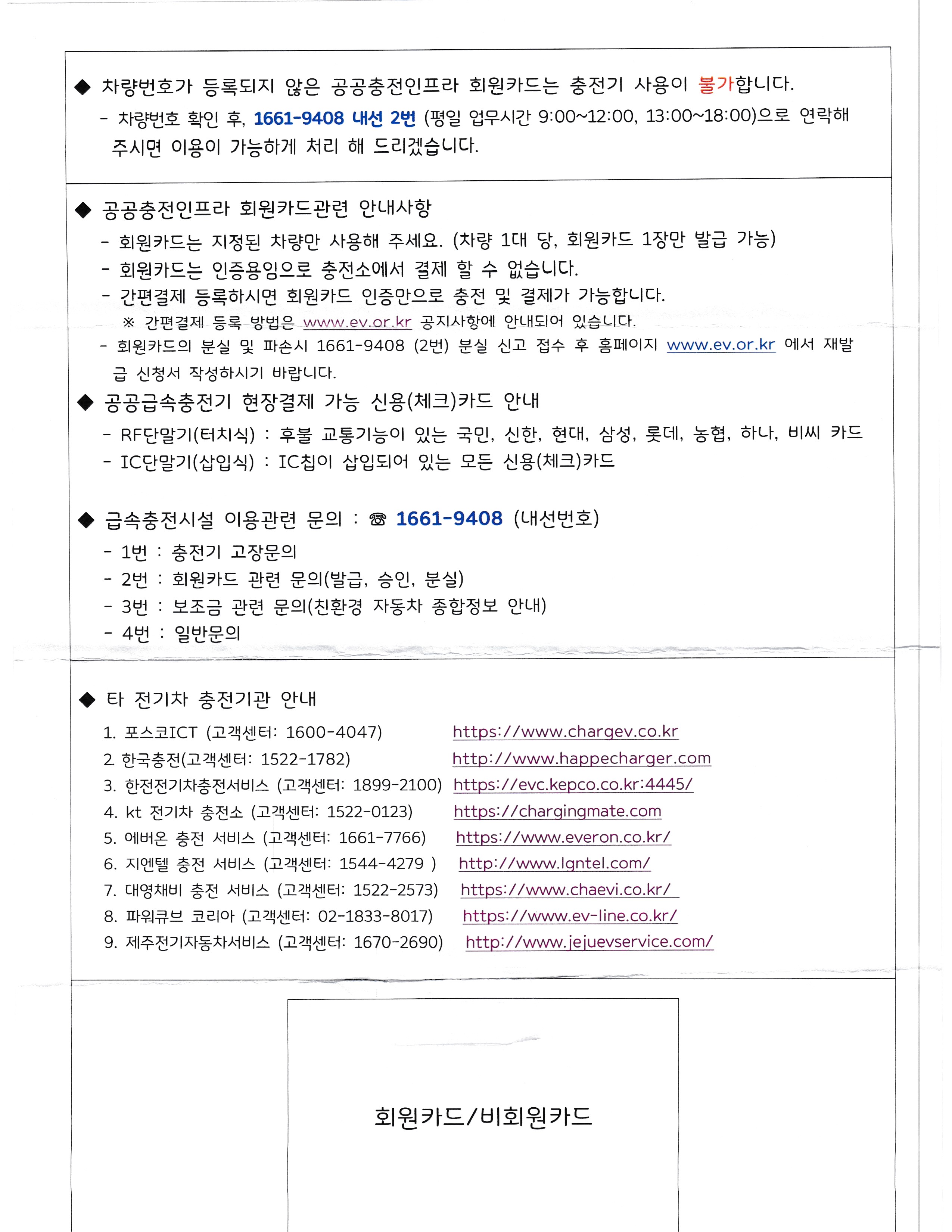 공공충전인프라 멤버십카드 타기관 충전기 사용방법 안내,