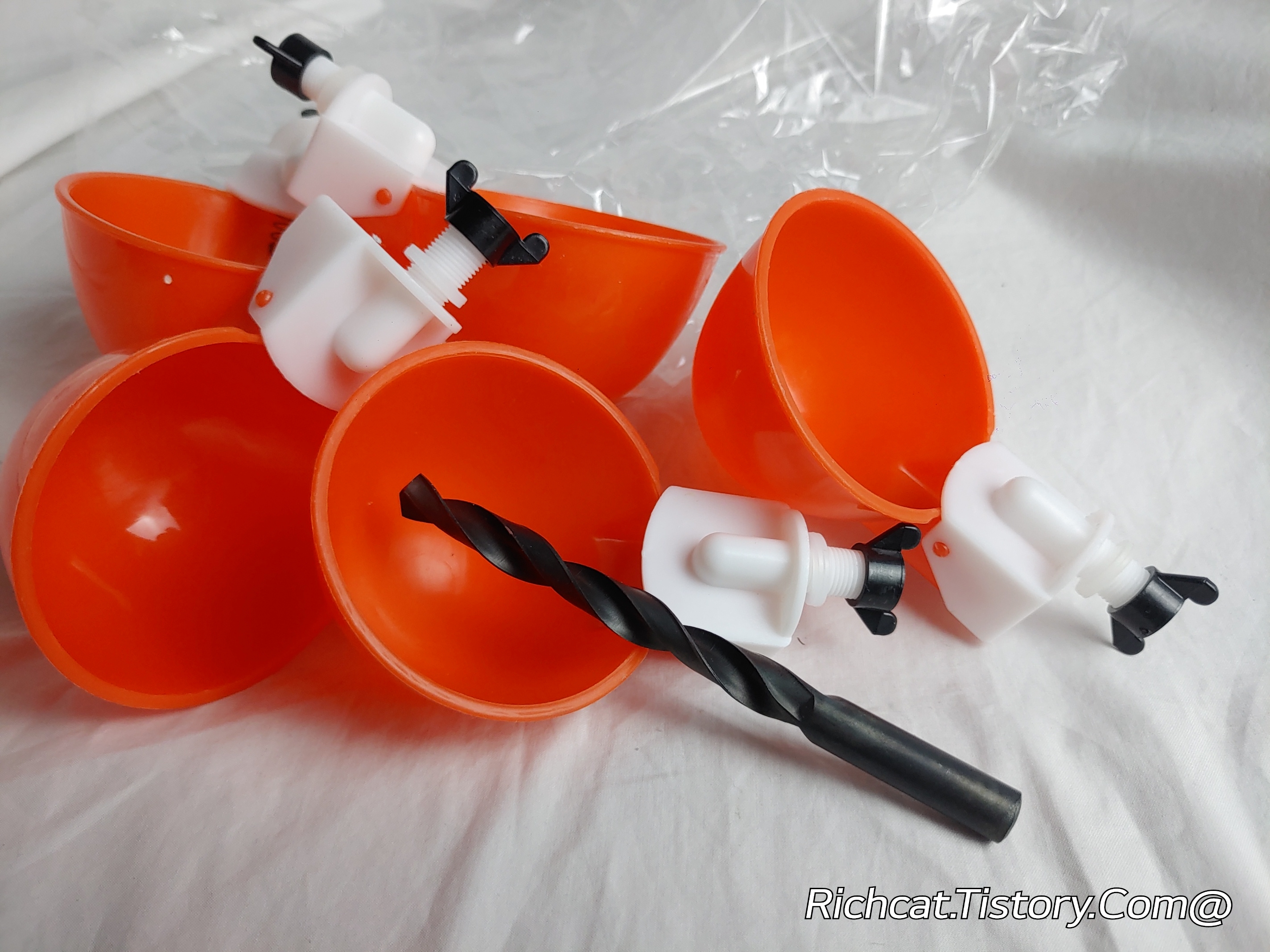 닭이나 병아리들이 물을 먹을 때 물이 내려오는 아주 간단한 도구이다