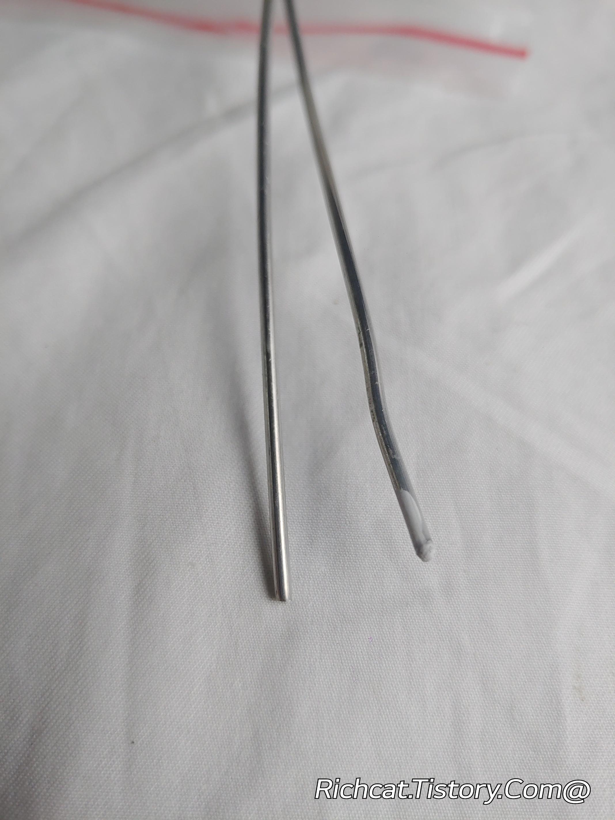 아래 사진에서 보듯이 라이터로 한참 지졌는데도 녹을까 말까 하다 그냥 납땜 인두로 녹이는 것이 현명한 선택일 것 같다