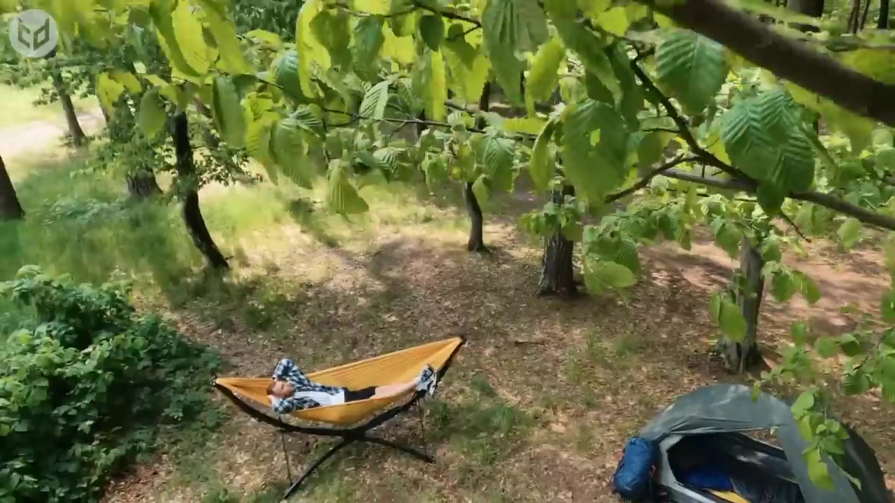 햄모크텐트는 햄모크의 편안함과 전통 텐트의 보호 기능을 결합한 제품으로, 나무 등 두 개의 고정 지점에 매달아 사용하죠.