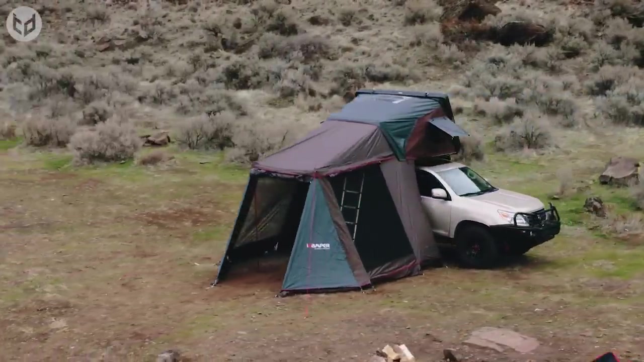 Red Tail의 하드사이드 루프탑 캠퍼는 탄소 섬유로 제작되어 있으며, 일렉트릭 리프트 메커니즘으로 원활하게 팝업돼요.