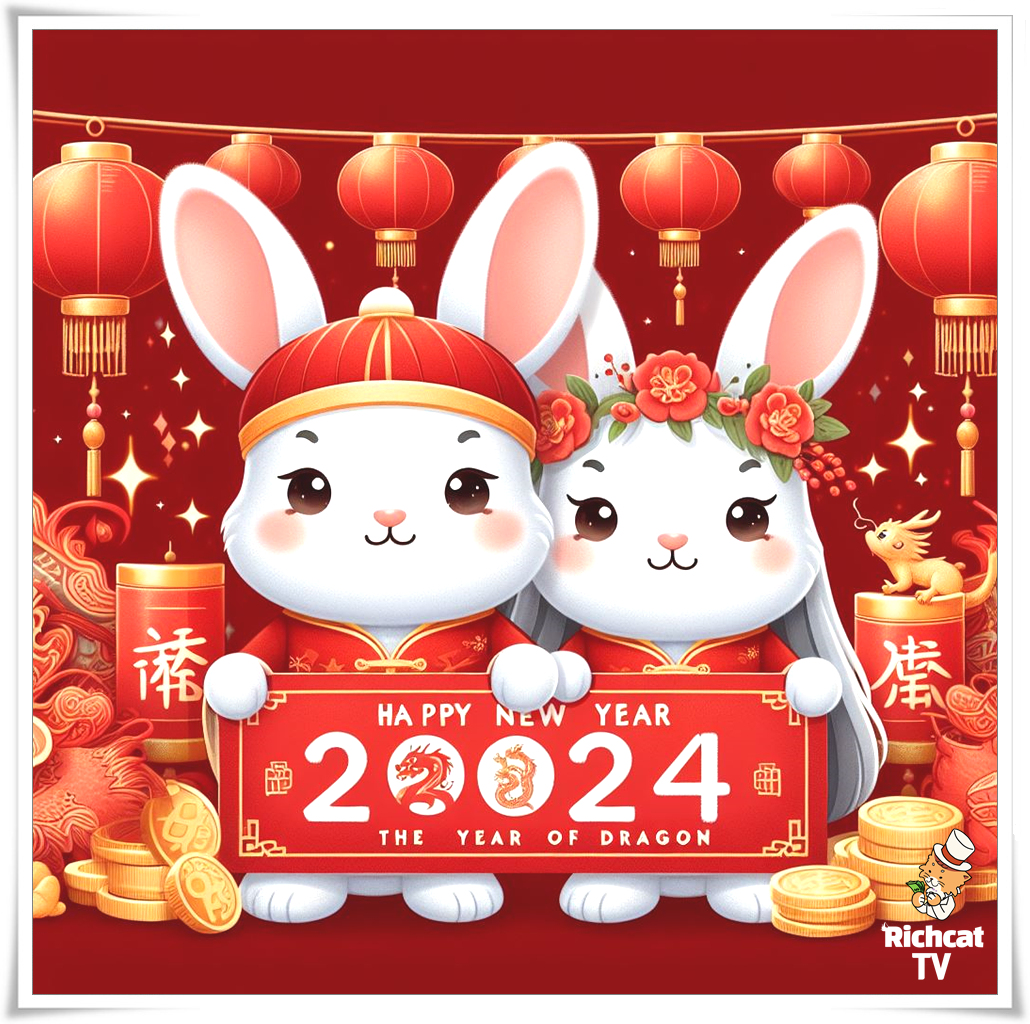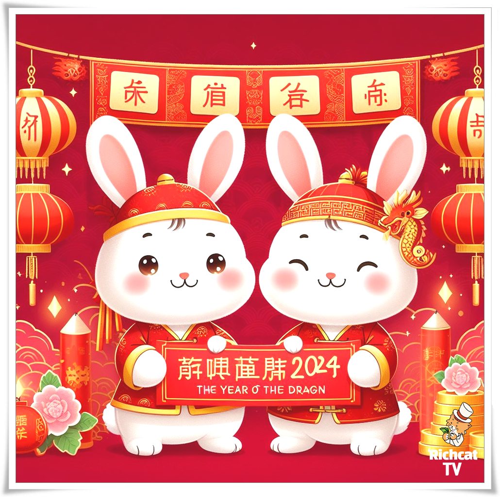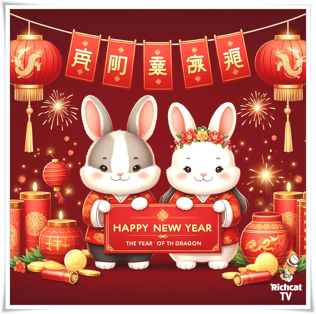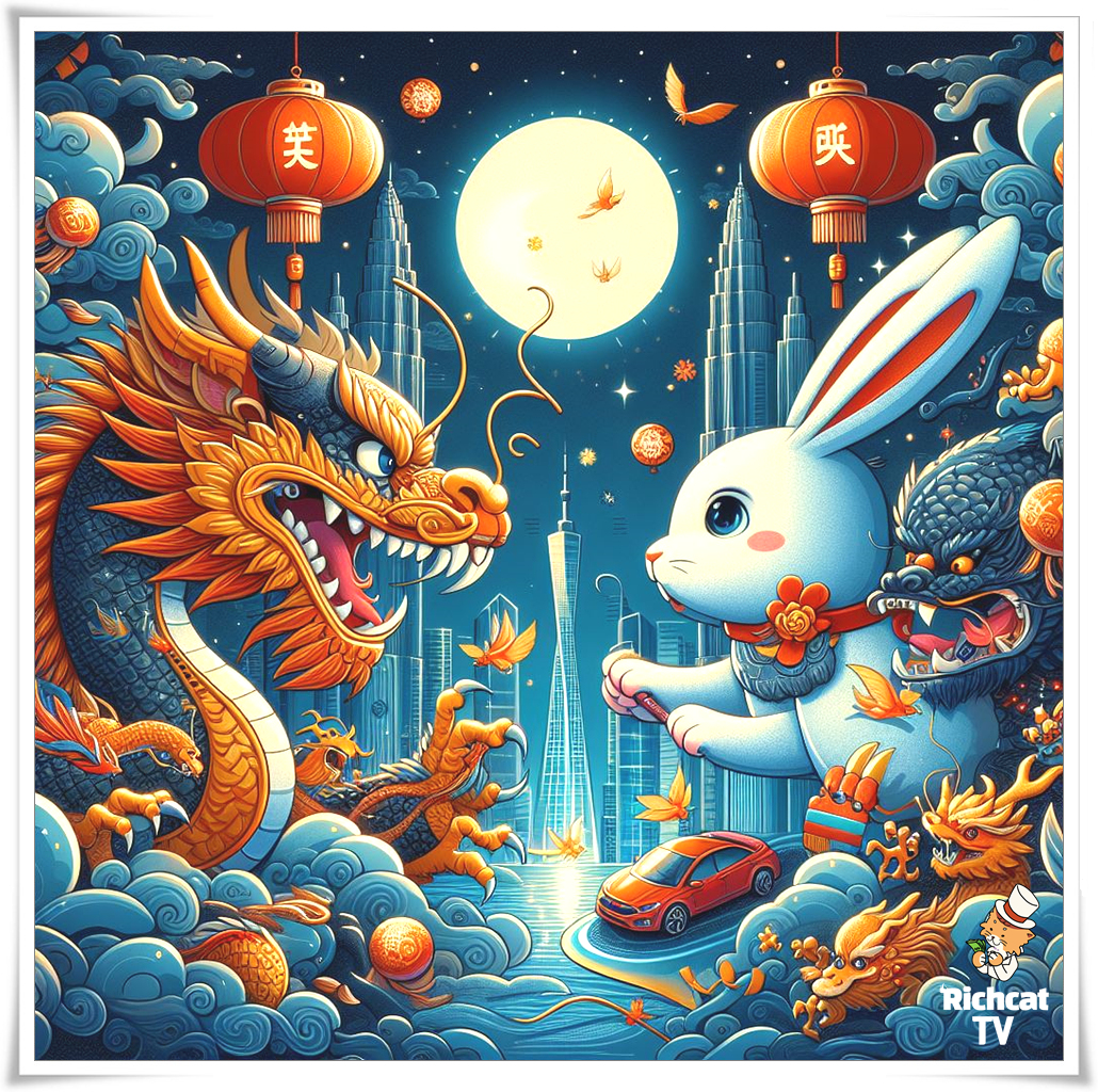 2024 happy new lunar year, with dragon and rabit, in seoul KOREA , Korean traditional art style