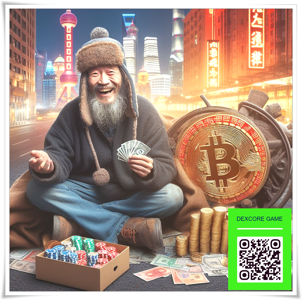 AI Chinese beggars who are happy after winning the Bitcoin casino roulette game...