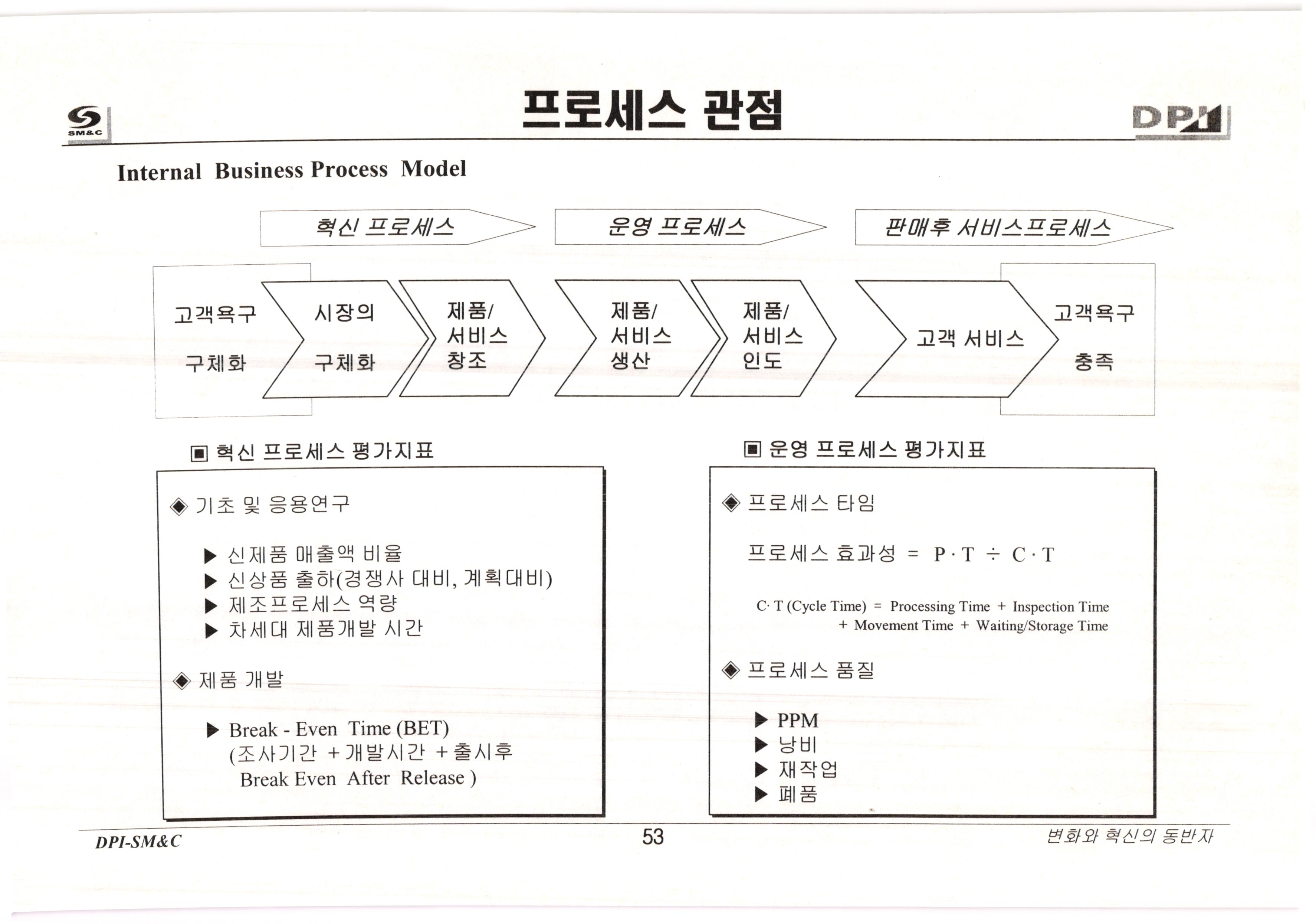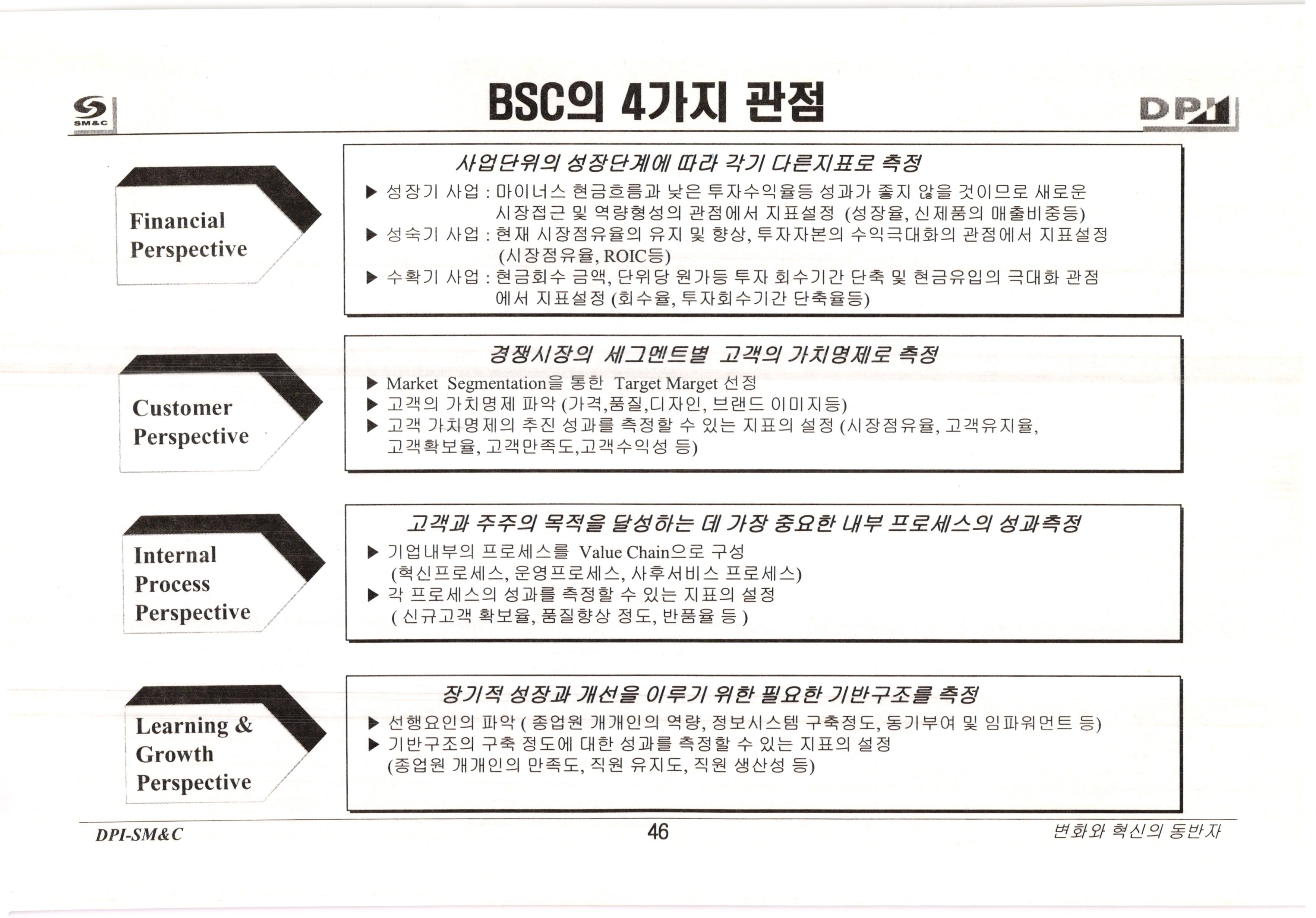 - 내부 프로세스 관점: 주요 프로세스의 효율성 및 효과성 평가