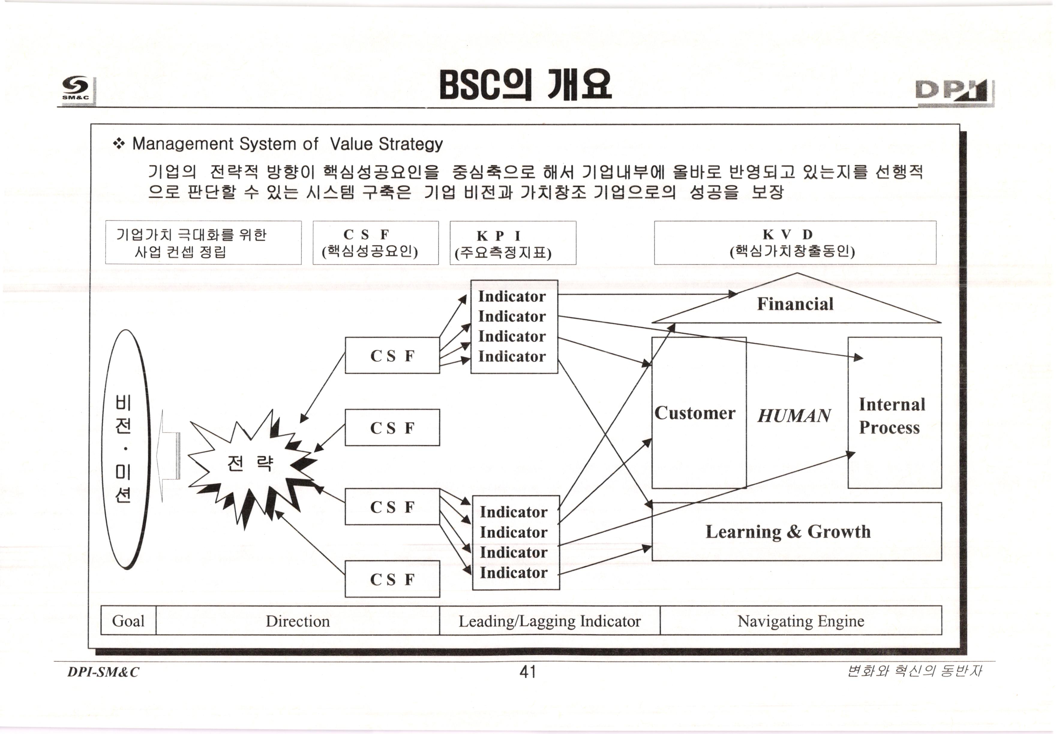 - BSC는 조직의 전략적 목표 달성을 위한 효과적인 도구
