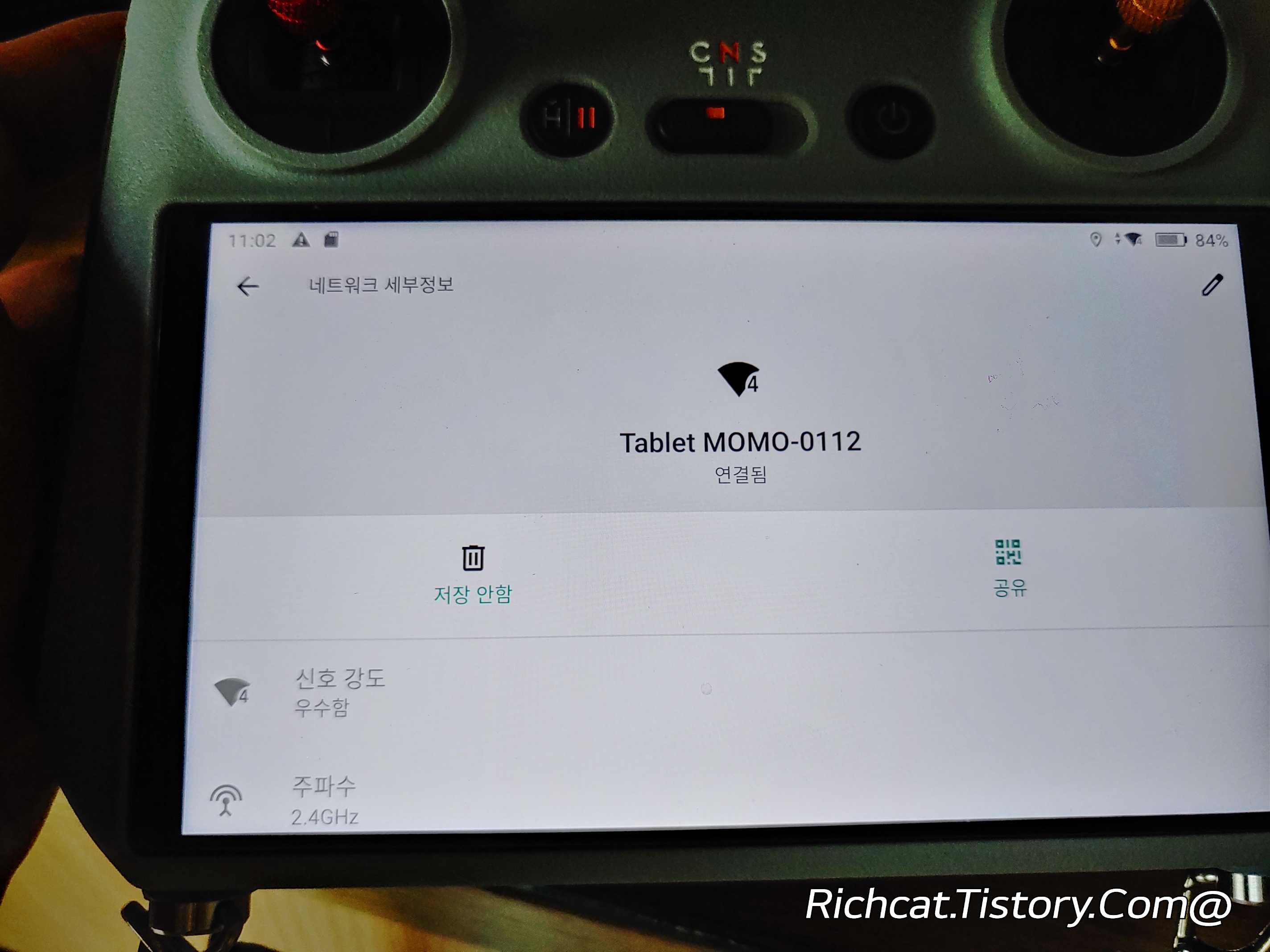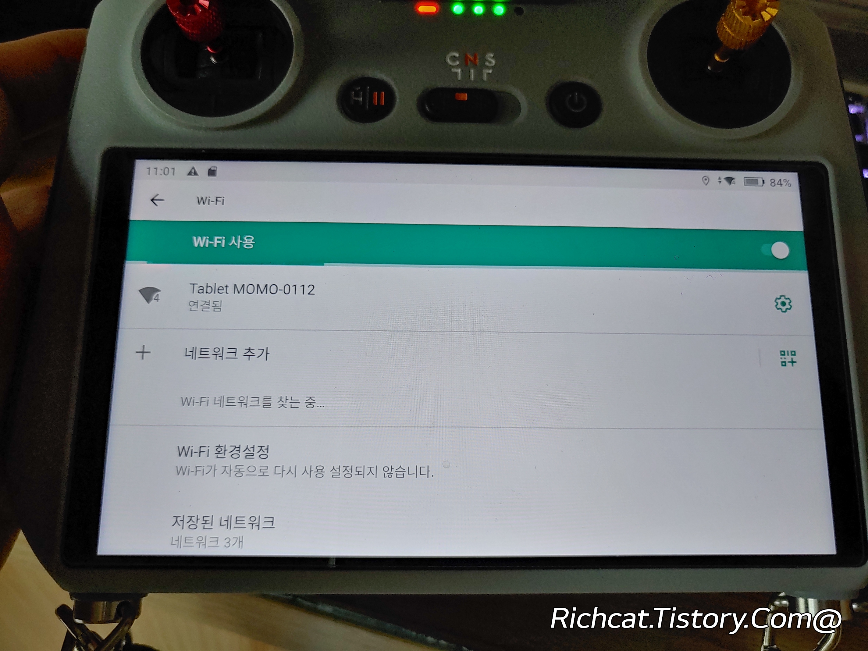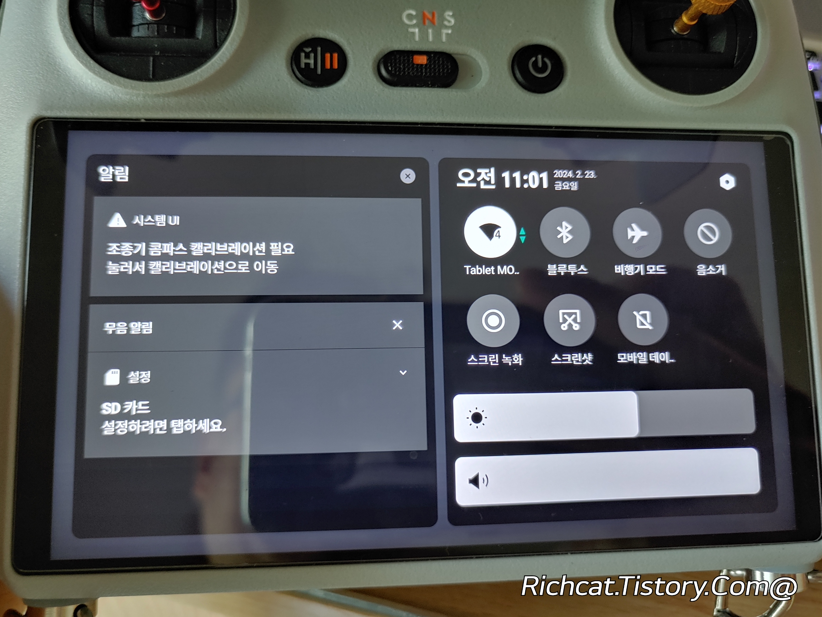 조종기 화면의 윗면을 아래로 긁어내리면...
