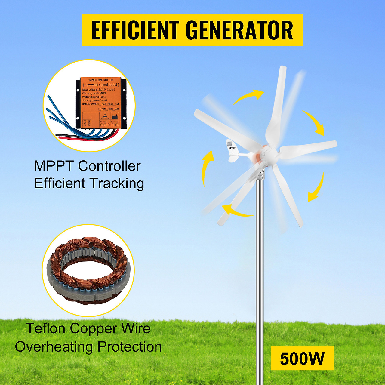 VEVOR 가정용 풍력 터빈 발전기, MPPT/충전 컨트롤러 포함, RV 요트 농장 소형 풍력 발전기, 300W, 400W, 500W