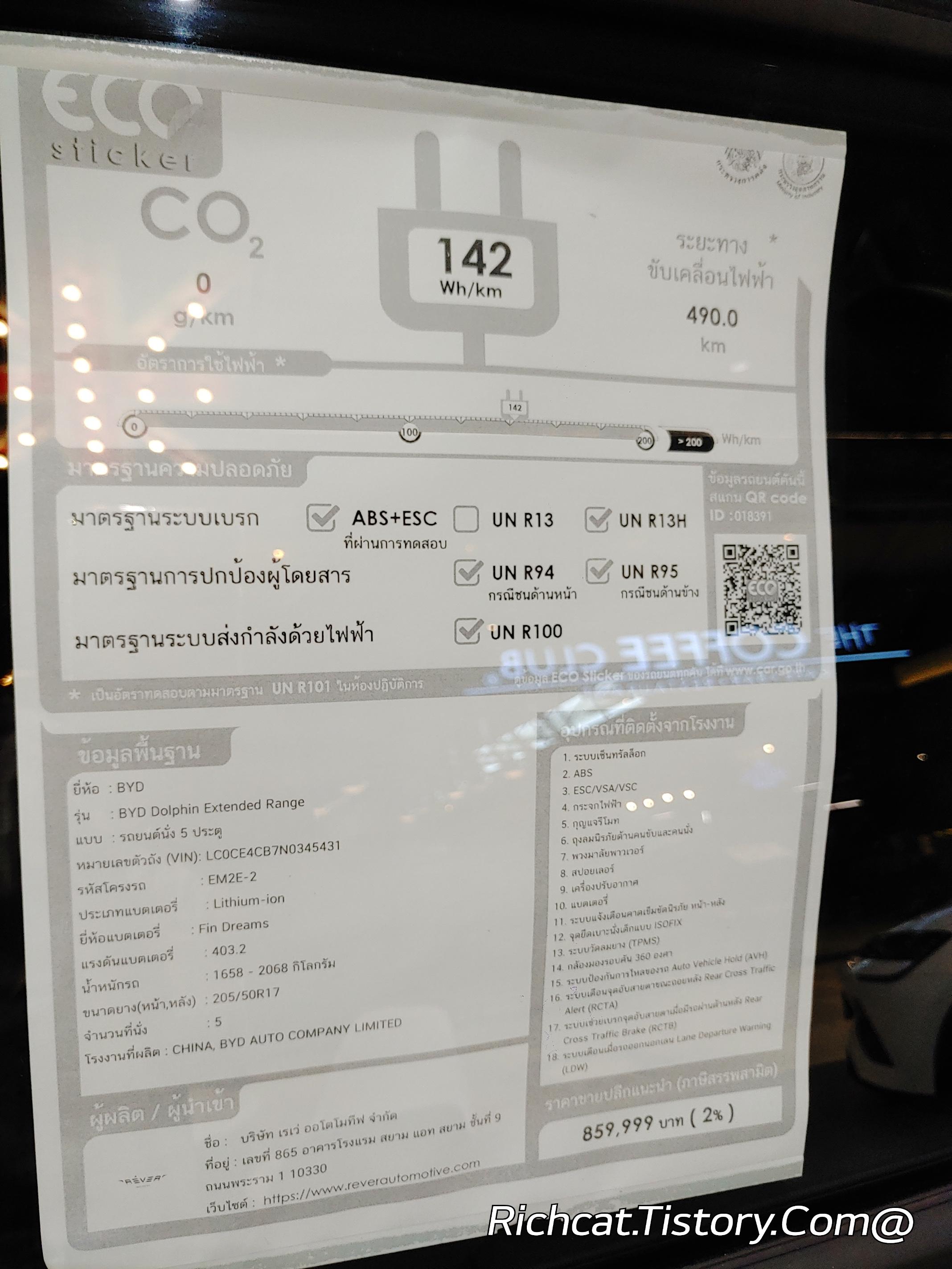 태국에서 중국산 전기차 BYD의 판매가격은?