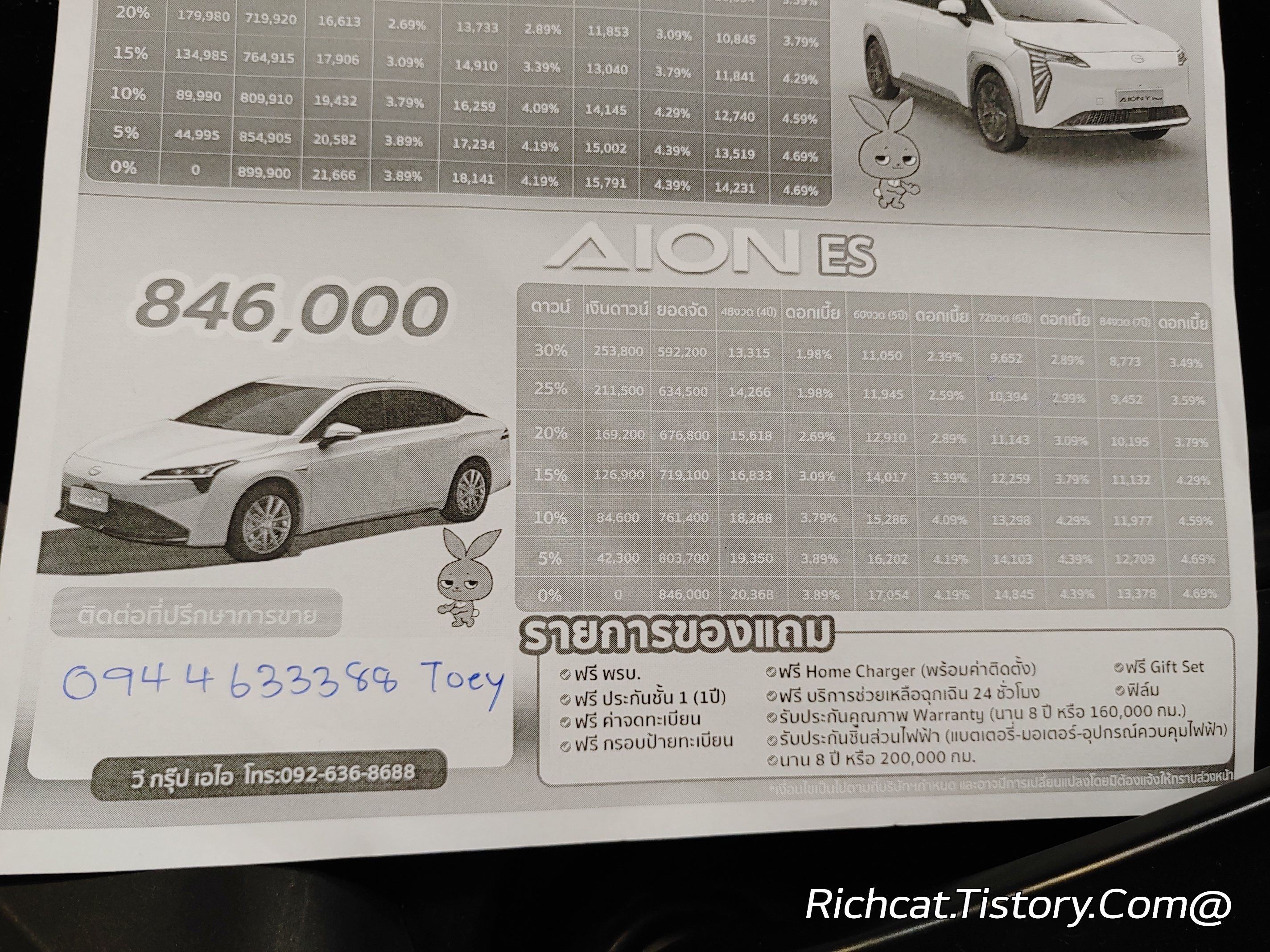 중국 전기차 아이온 가격표(feat.태국 파타야 터미널21 전시장)