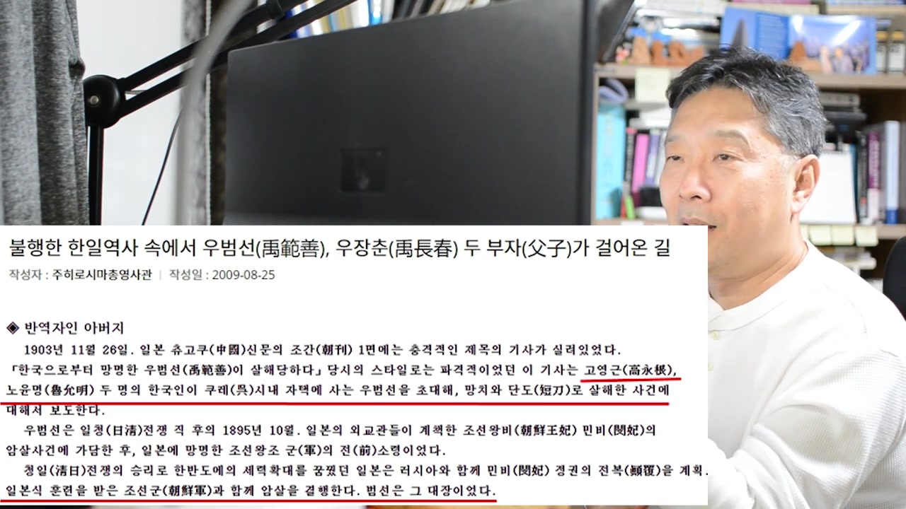 2009년에 기록된 민비의 몸에 칼을 휘둘러 20명이 달고 목을 베어 죽인 사건을 한일 역사의 일환으로 언급해.