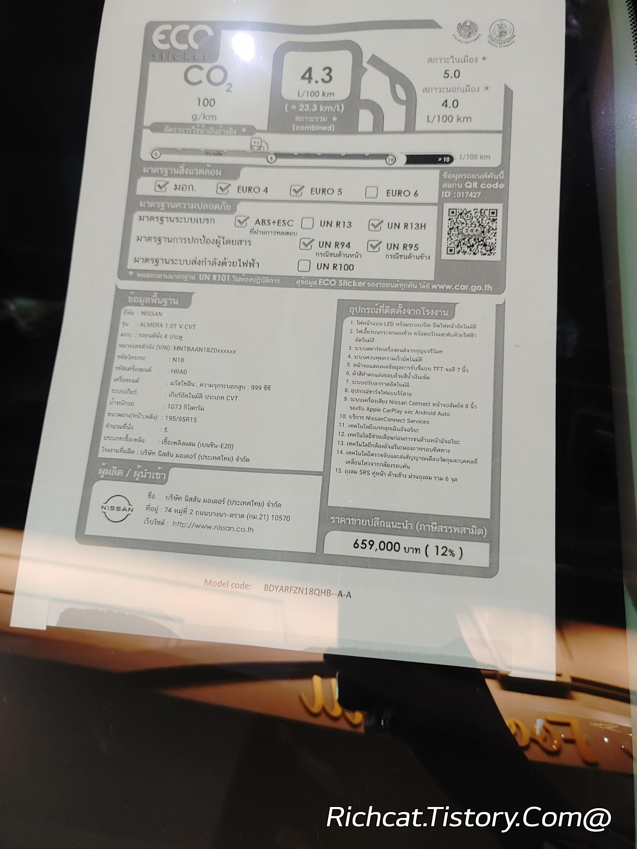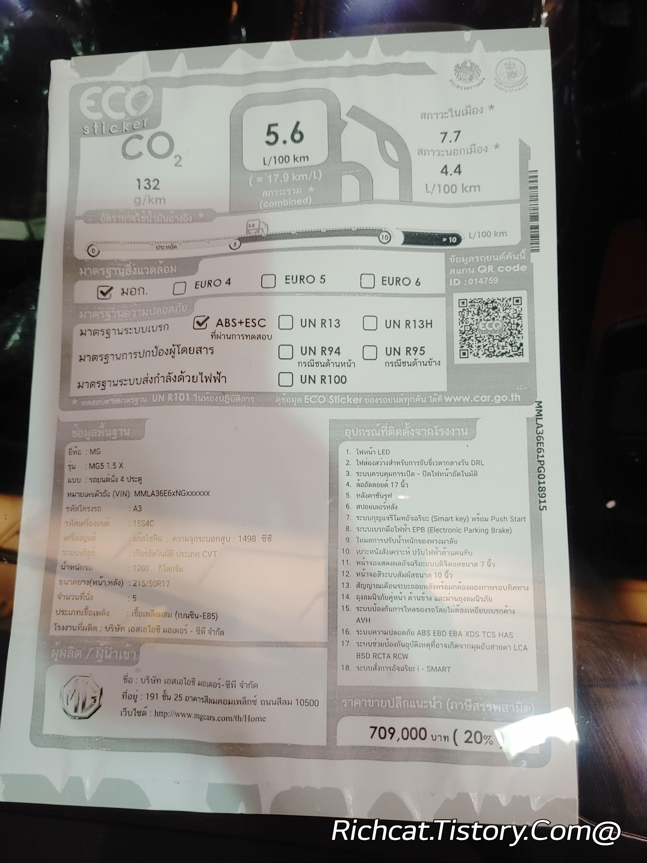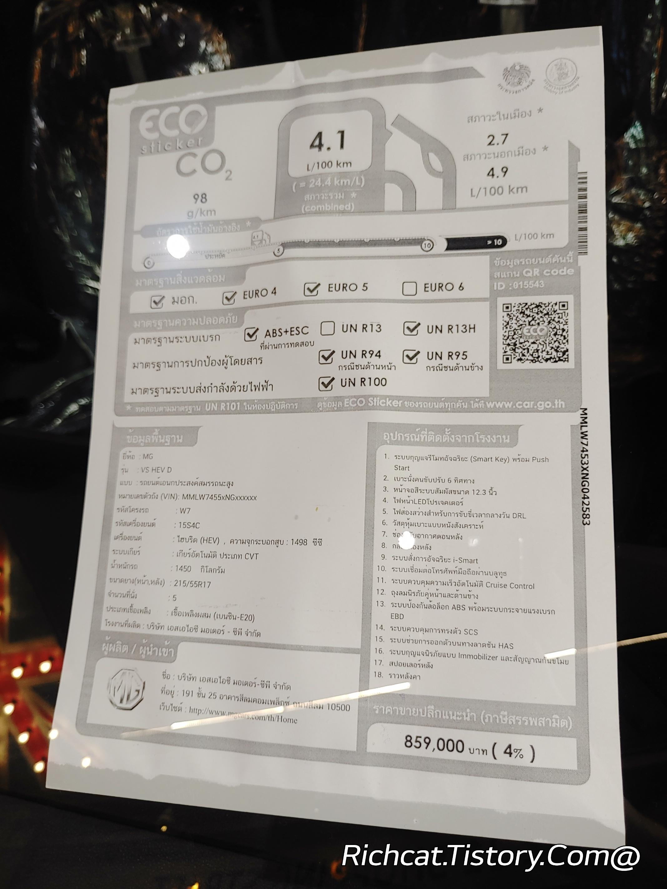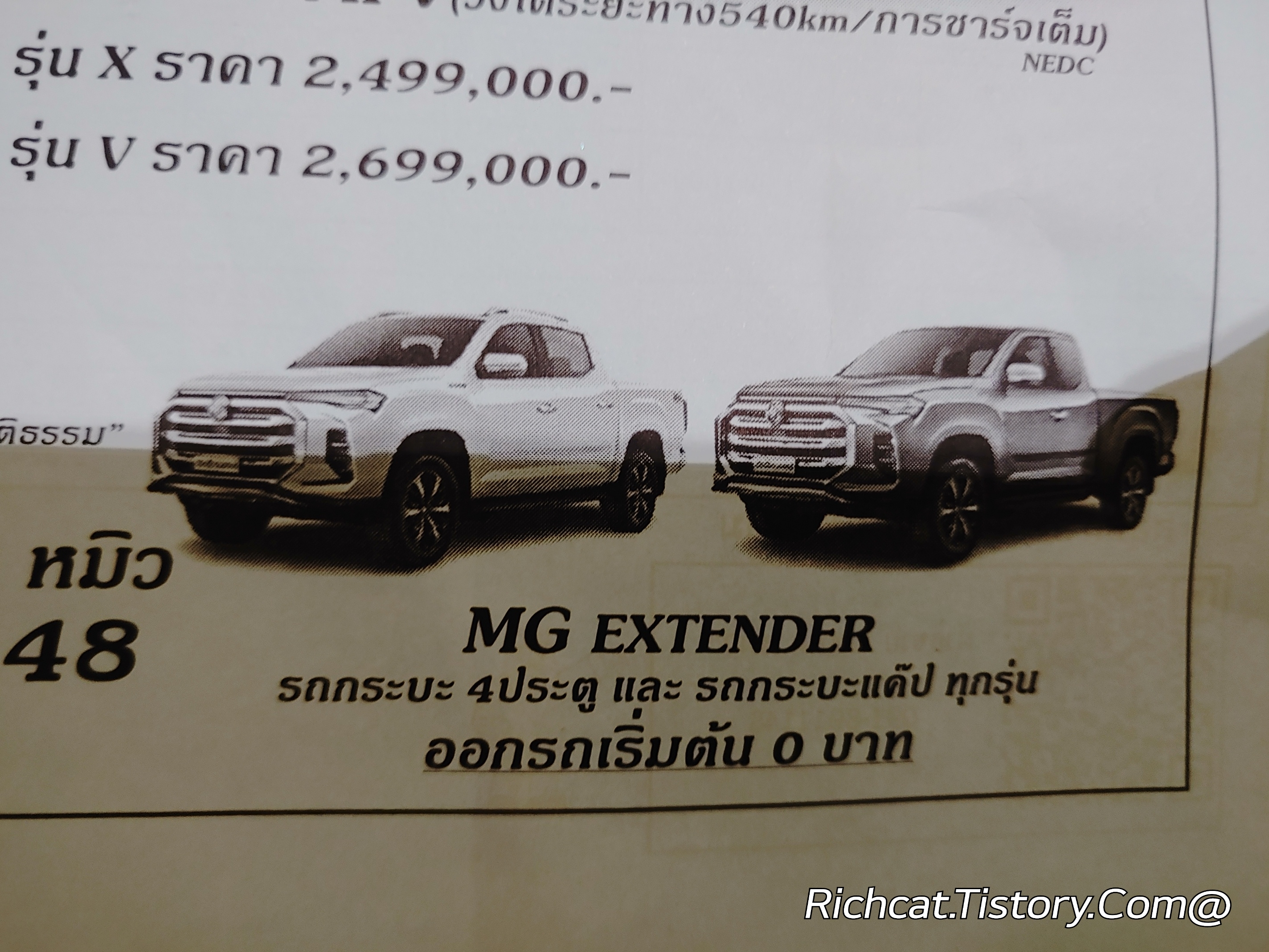 MG자동차 전차종. 태국 판매가격표. 태국물가