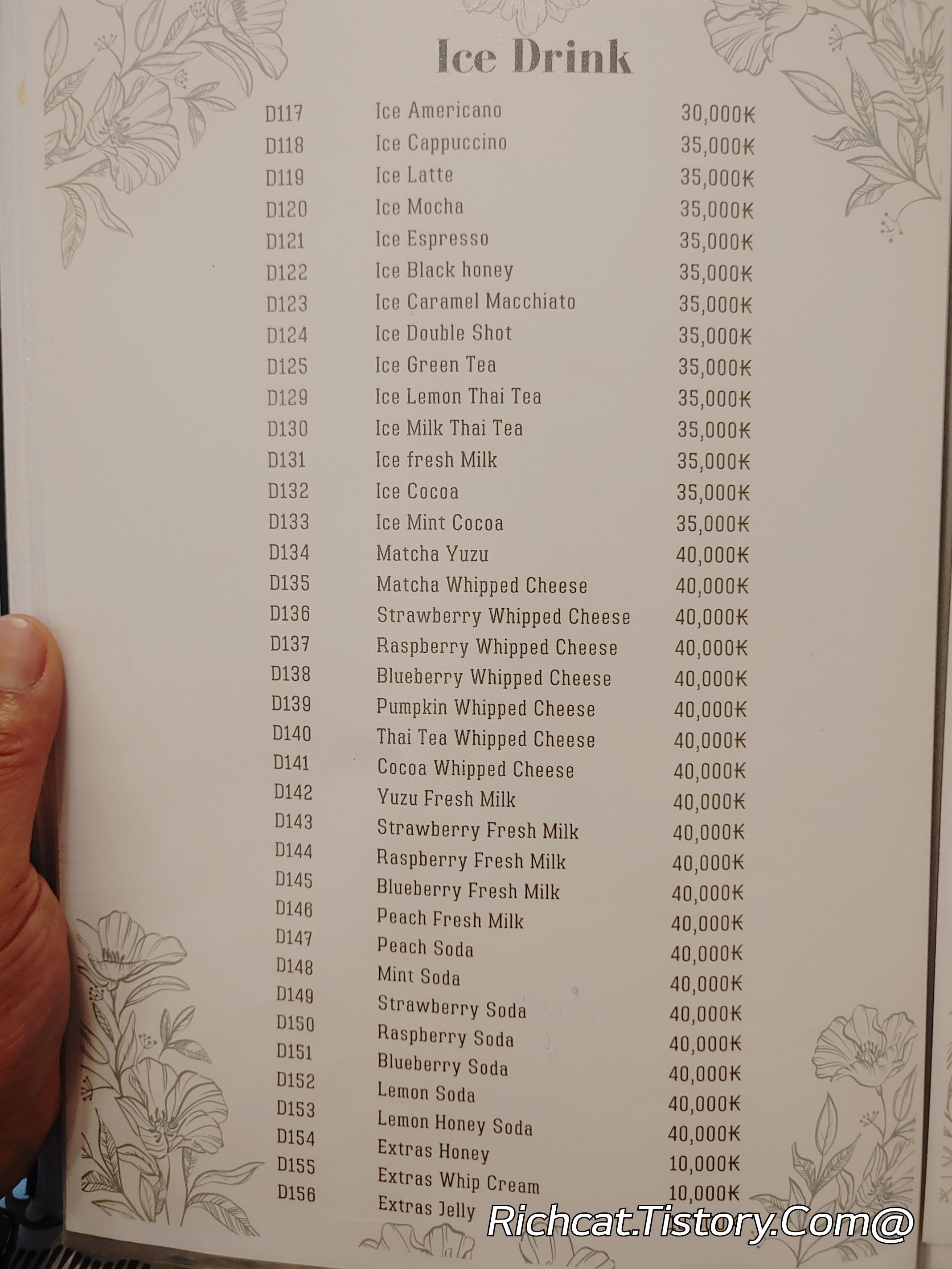 벨라카페 메뉴판. 가격표. ^&^