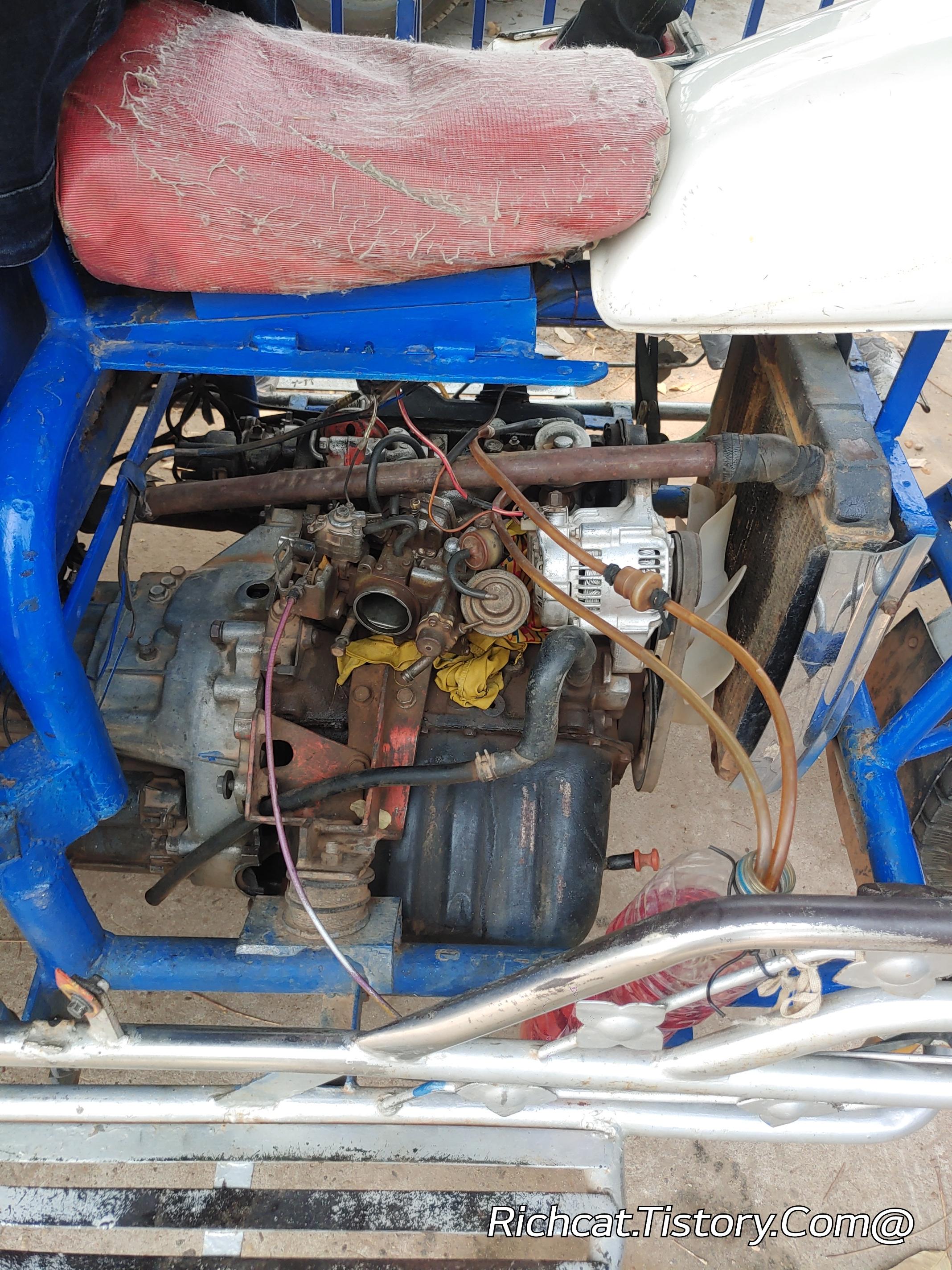 엔진에 직접 연결되어 있는 페트병 연료통...!!!