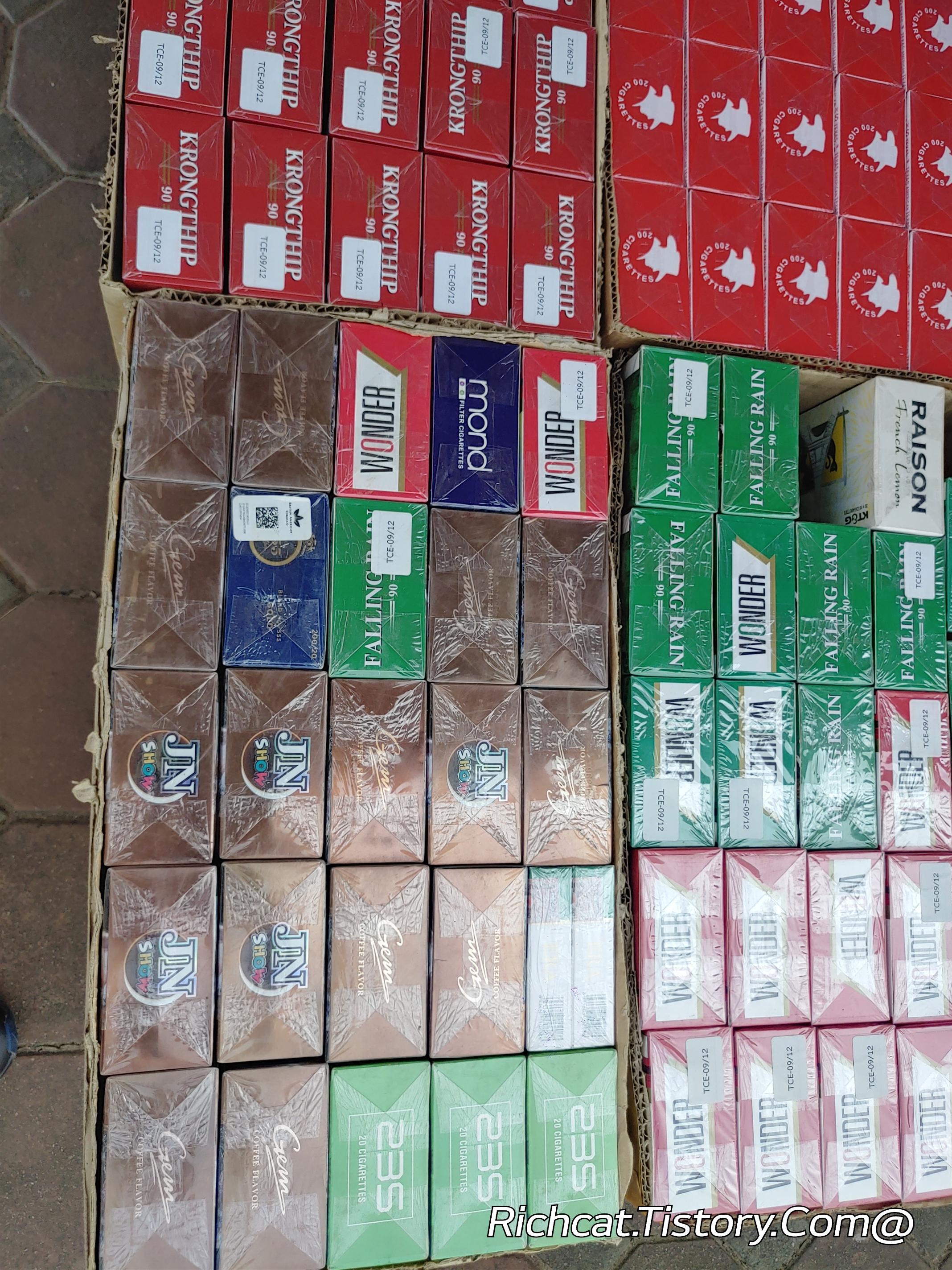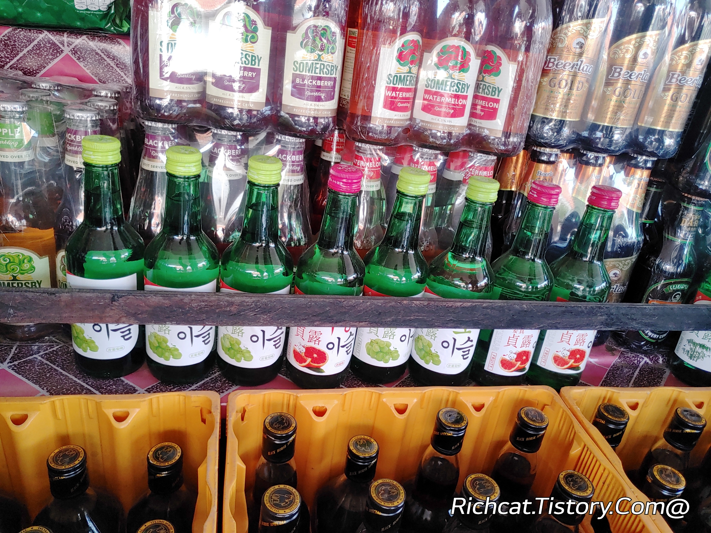 한글이 크게 박힌 동남아에서 생산한 소주가 양주처럼 박스채 전시되어 판매되어지고 있고...ㅎㅎ