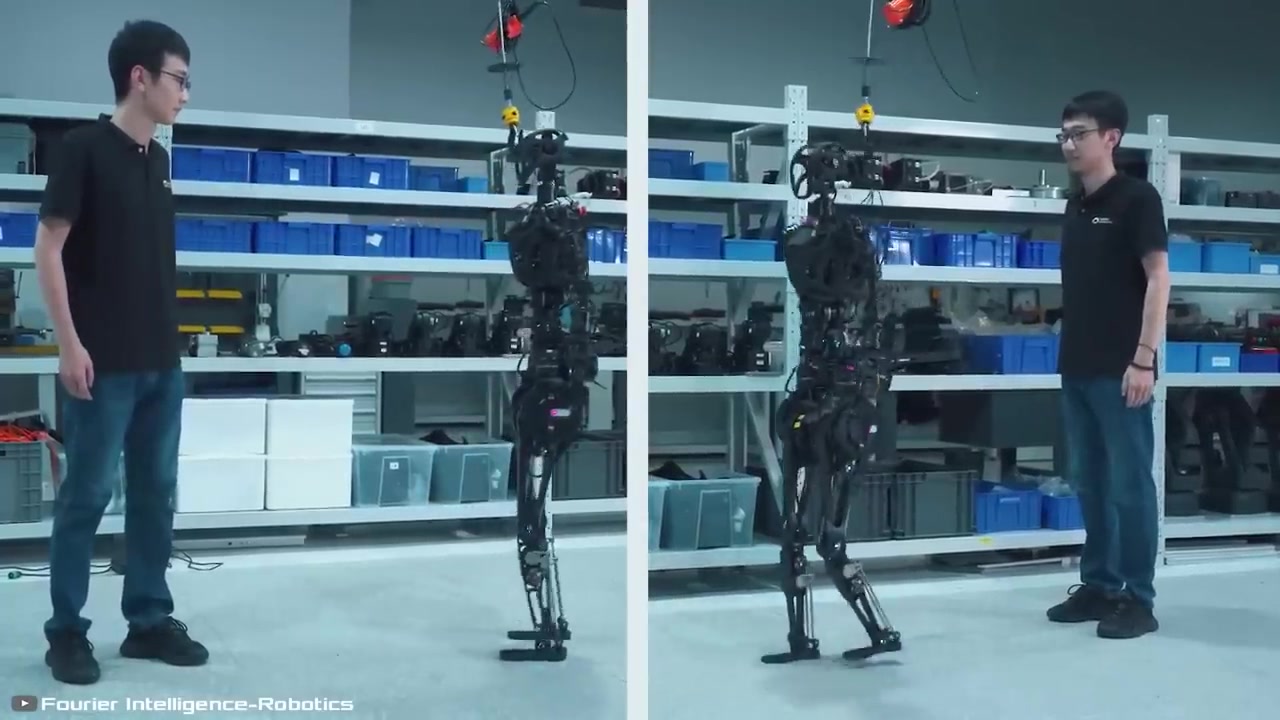 'GR1'은 범용 인간형 로봇으로 다양한 작업을 수행할 수 있고, 강력한 전기모터를 갖추어 높은 하중을 견디도록 설계돼요.