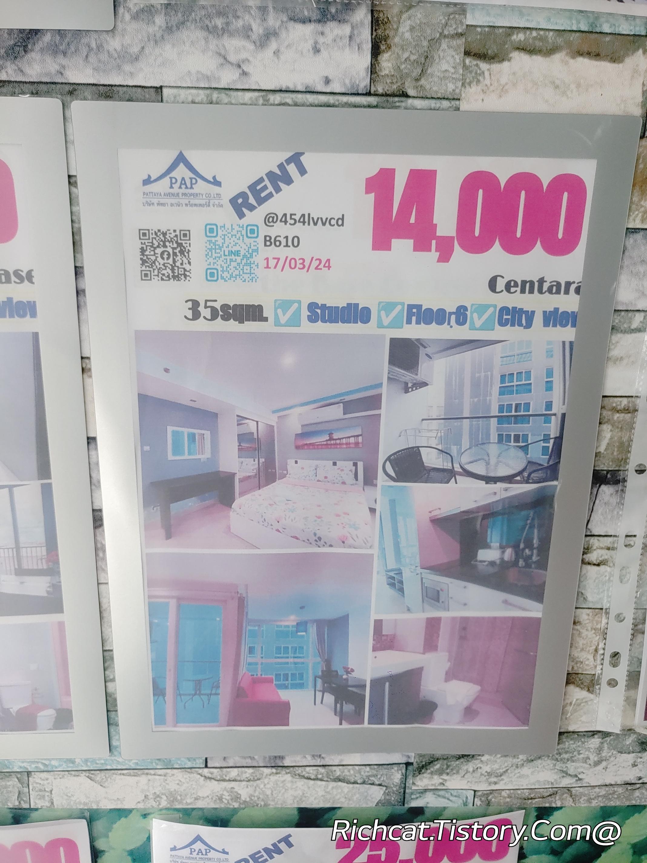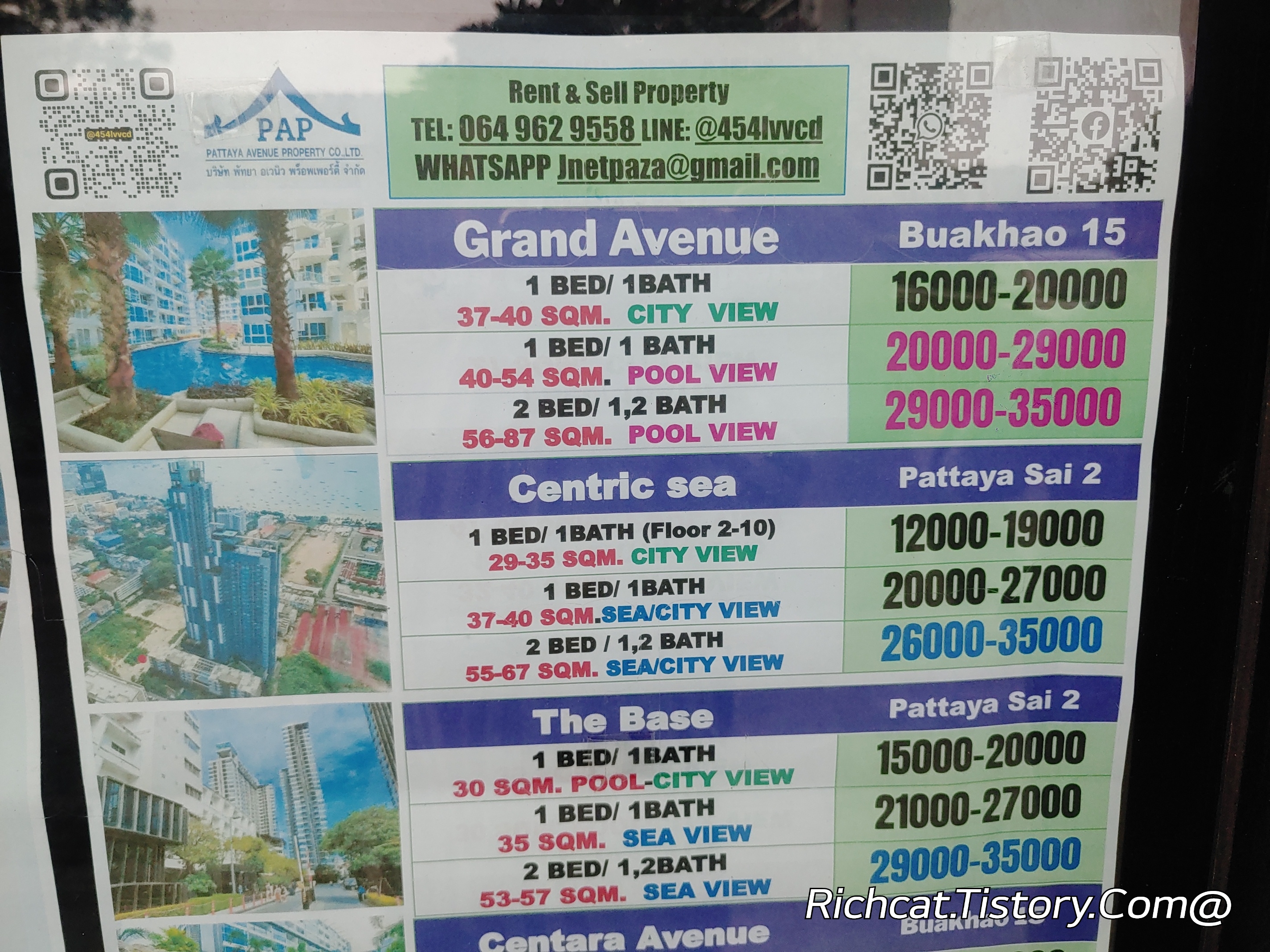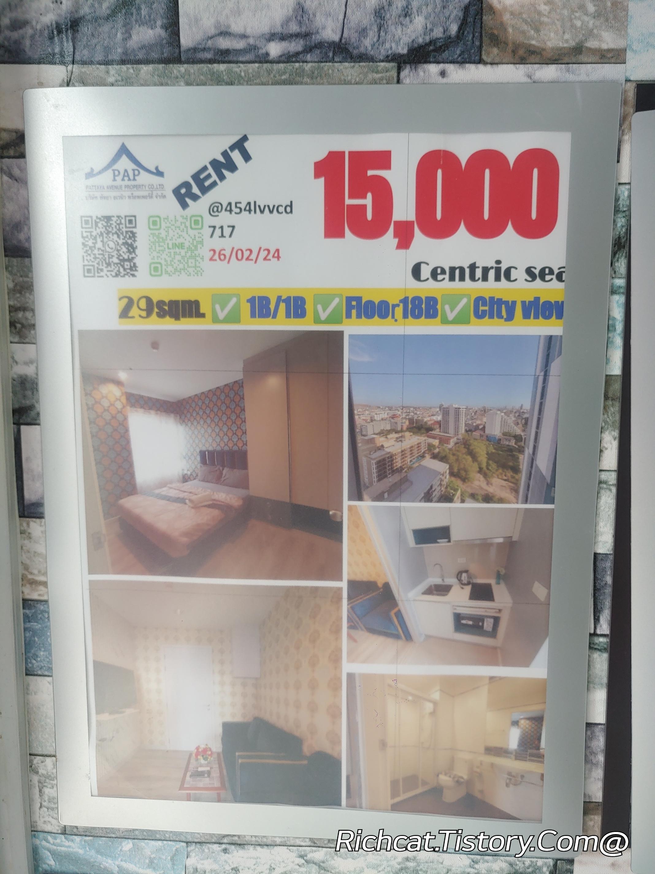 태국 파타야 "센트릭씨" 콘도. 렌트 가격표.