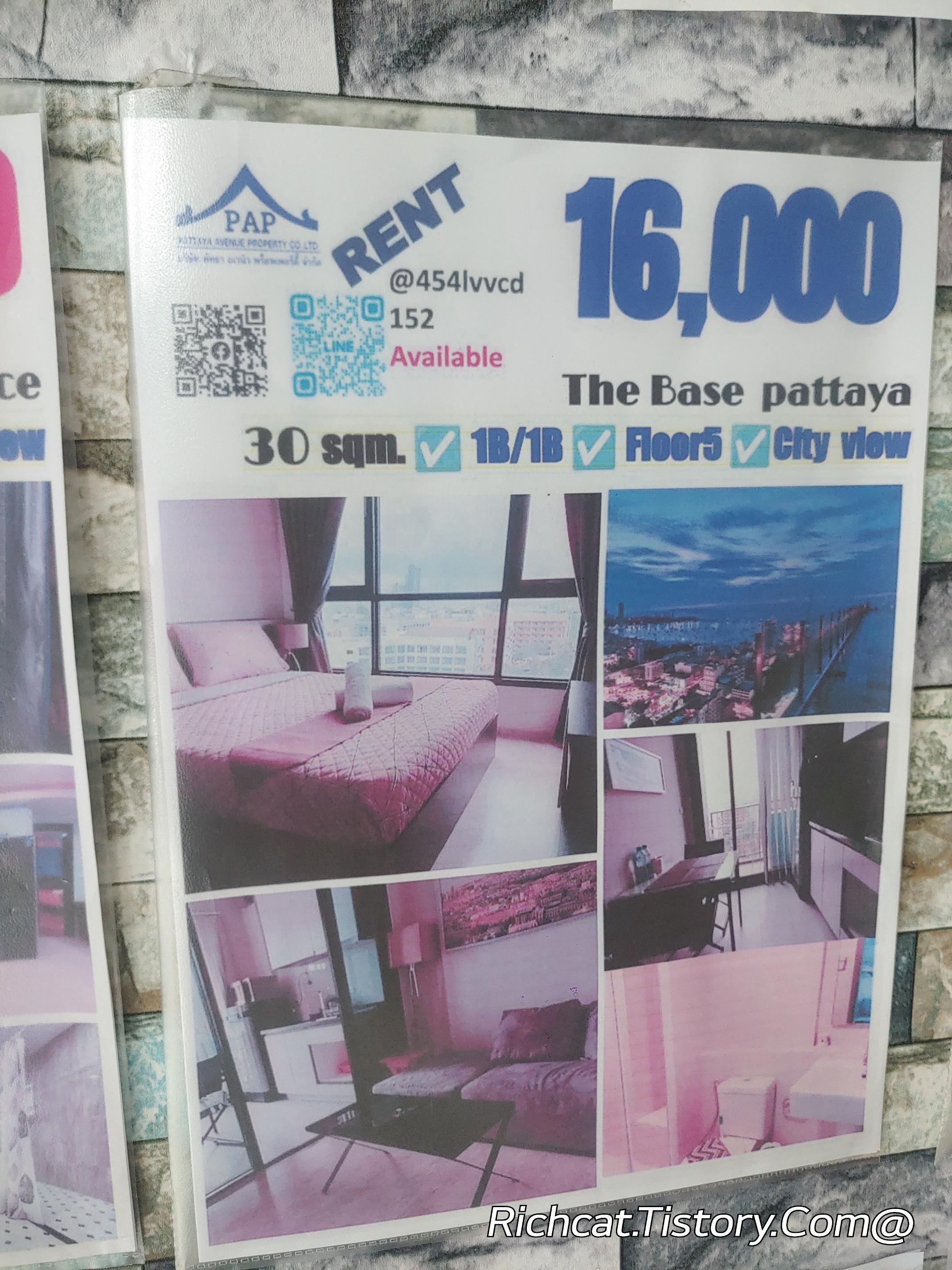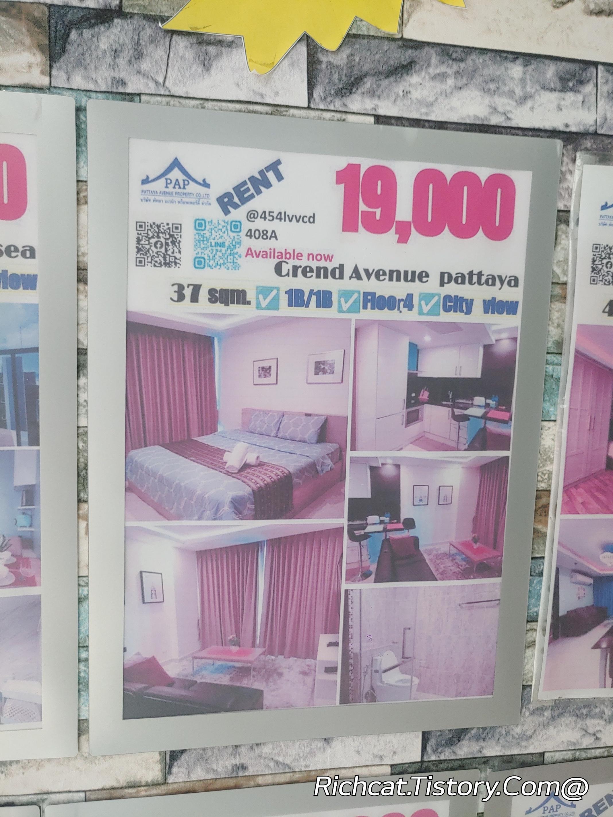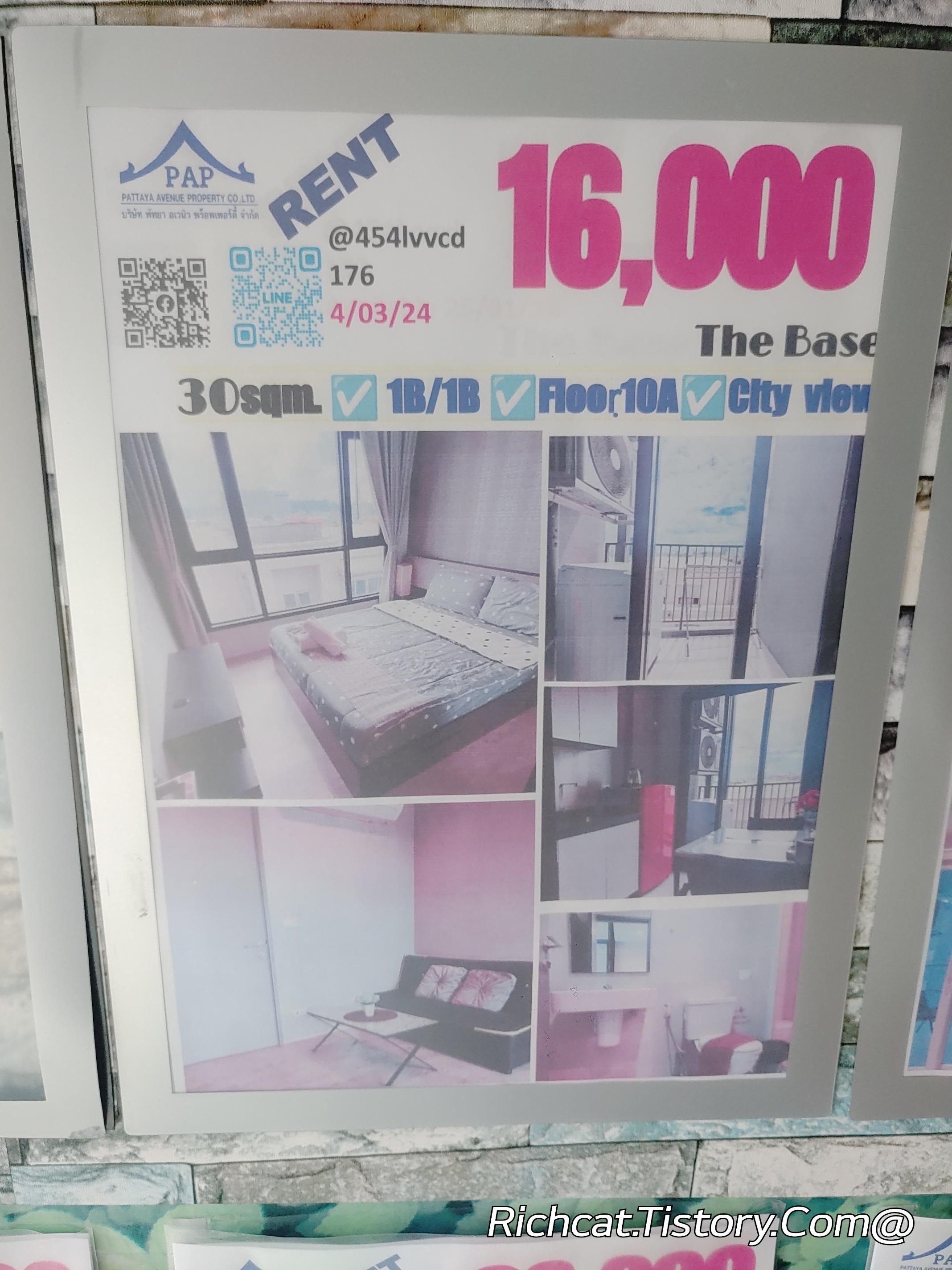 태국 파타야 "센트릭씨" 콘도. 렌트 가격표.