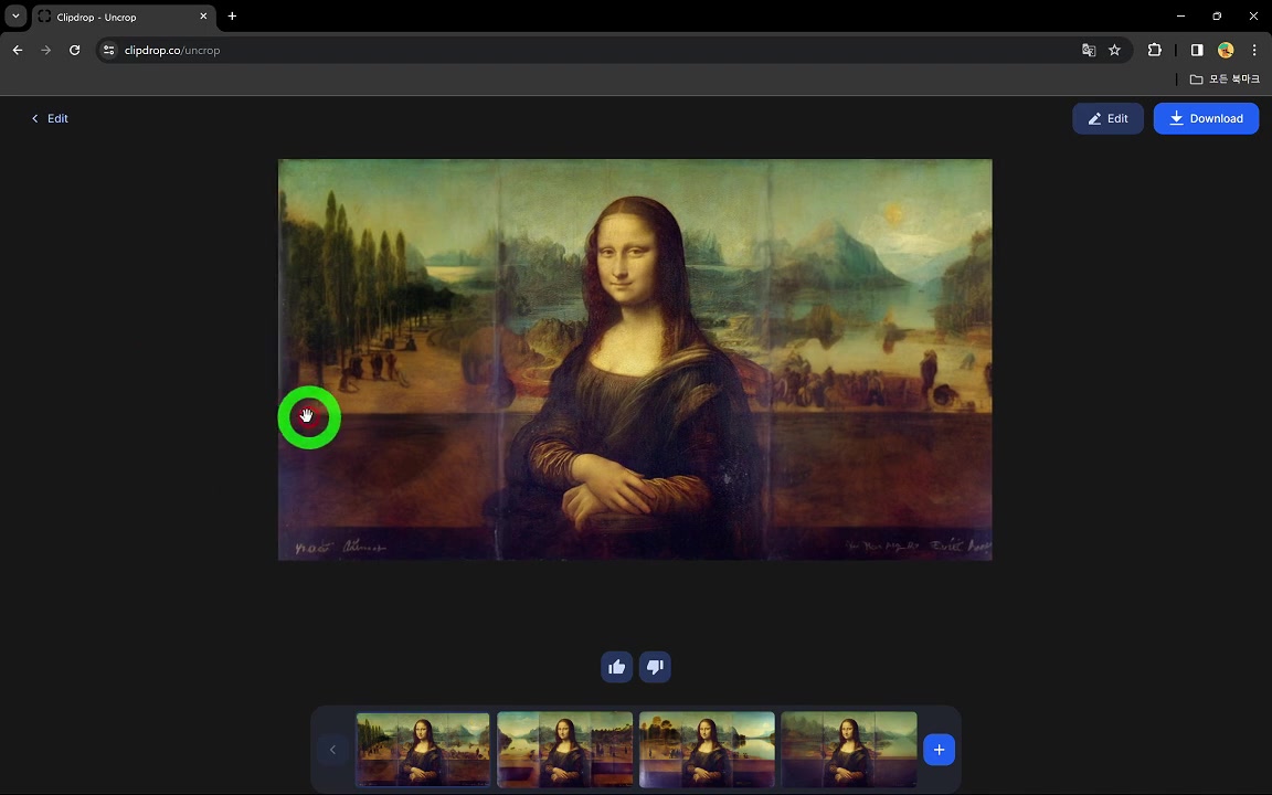 "클러피드롭"을 활용하여 '모나리자 손흥민' 이미지를 배경화면으로 만드는 과정까지 진행되었대요.