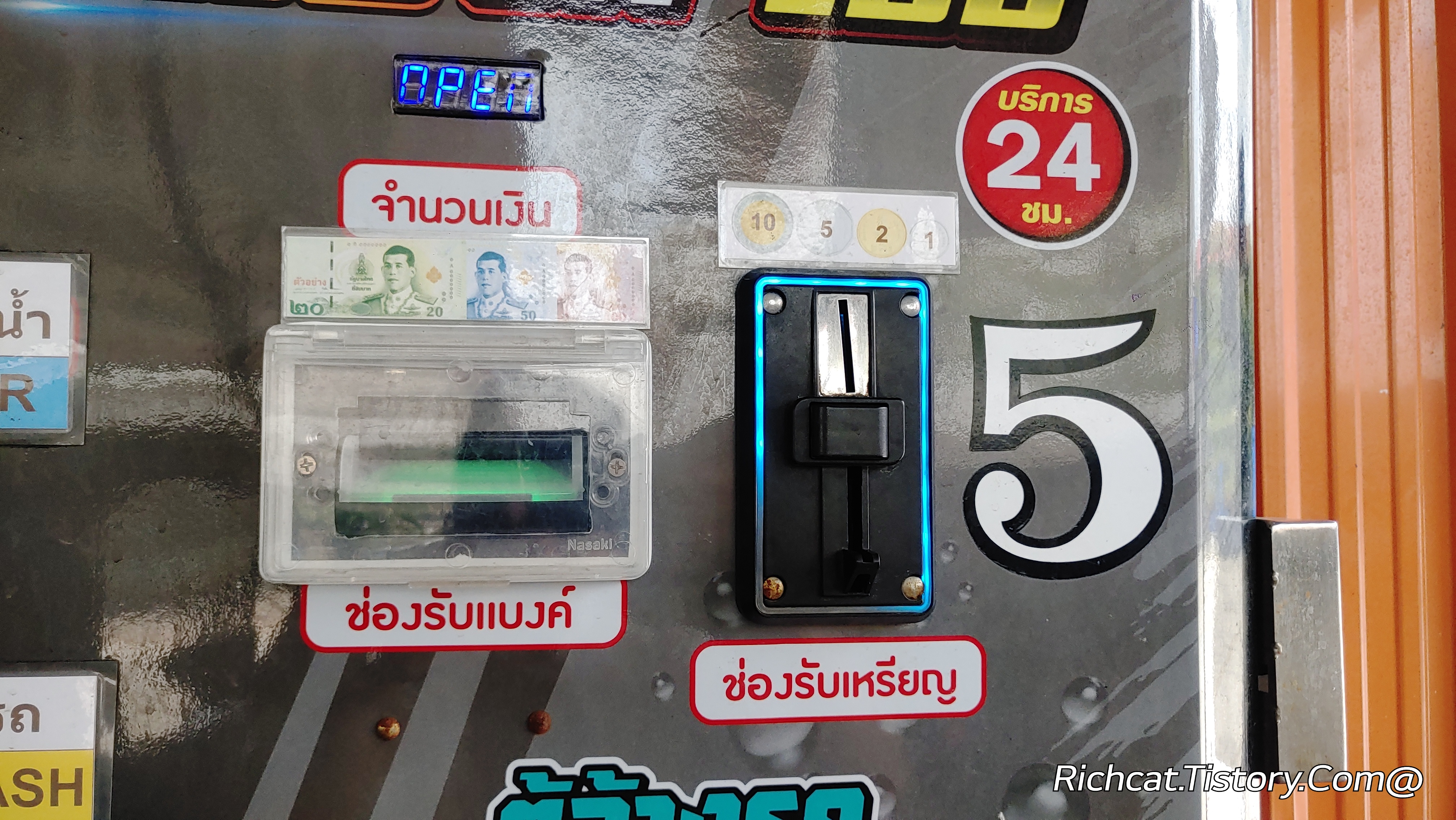 동전을 넣고 세차 정비를 가동하는 것은 한국과 동일하다 그리고 여기서도 느낄 수 있는 것이 인건비가 싸다고 생각되는 태국도 "무인사업"이 늘어나고 있다는 것이다